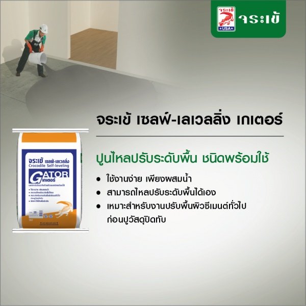 ปูนปรับระดับ จระเข้ เซลฟ์-เลเวลลิ่ง เกเตอร์ บ่มตัวได้ด้วยตัวเองโดยไม่ต้องใช้น้ำยาช่วย