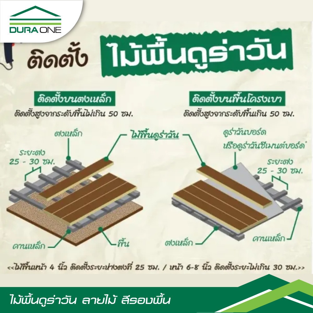 ไม้สังเคราะห์ดูร่าวัน สวยงาม โดดเด่น คุ้มค่ากว่าไม้จริง และ ทนทานยิ่งกว่า ด้วยคุณสมบัติไฟเบอร์ซีเมนต์ ซึ่งมีส่วนผสมมาจากปูนซีเมนต์ปอร์ตแลนด์ ซิลิก้าบริสุทธิ์ และ เส้นใยเซลลูโลส ผ่านกระบวนการอบไอน้ำที่อุณหภูมิและแรงดันสูงทำให้แข็งแรง ทนทาน เนื้อเหนียว และไม่ยืดหดตัว ช่วยให้บ้านของคุณสวยงาม ยาวนาน