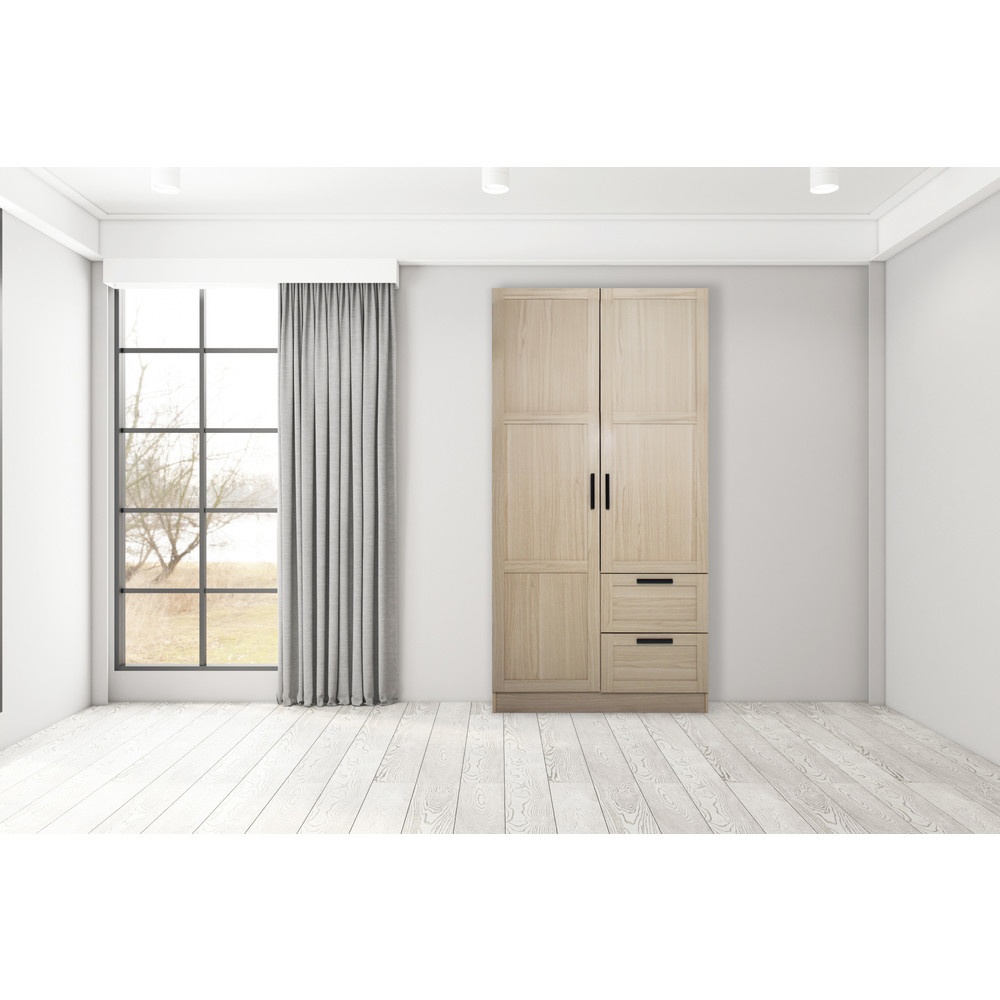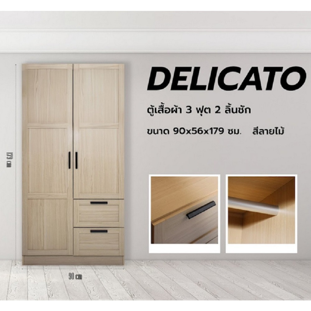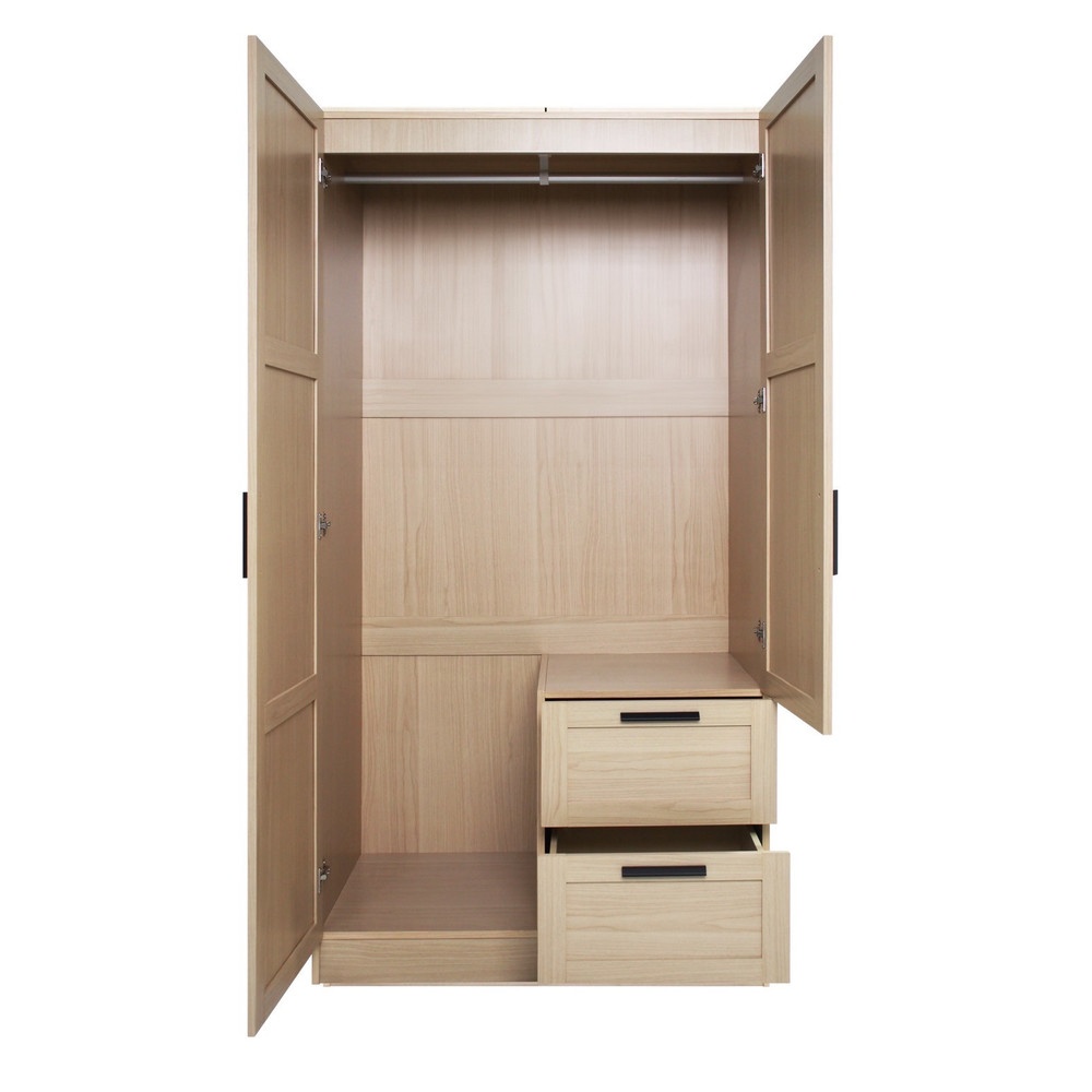 ตู้เสื้อผ้าประตูแบบเปิด ดีไซน์สวยงามทันสมัย ผลิตจากไม้ MDF ปิดผิว มีความแข็งแรงทนทานต่อการใช้งานและมีลิ้นชักสำหรับวางของอเนกประสงค์