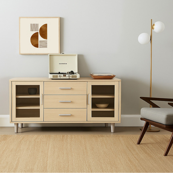 DELICATO ชั้นวางทีวี รุ่นบอสตัน ขนาด152.6x39.5x85.9 ซม. สีบีช ดีไซน์ทันสมัย เรียบง่าย เหมาะสำหรับบ้าน คอนโด หรือห้องพักทุกสไตล์ บานเปิด 2 บาน 3 ลิ้นชัก การใช้งาน เก็บของใช้ส่วนตัว รีโมท หรือเอกสารต่างๆ เพื่อความเป็นระเบียบ วัสดุผลิตจากไม้ปิดผิวเมลามีนคุณภาพดี ไม่เป็นรอยง่าย มีความทนทานต่อการใช้งาน ผิวเรียบเนียน เช็ดทำความสะอาดง่าย ดีไซน์สวยงาม ให้เข้ากับสไตล์บ้านหรือสำนักงานของคุณ