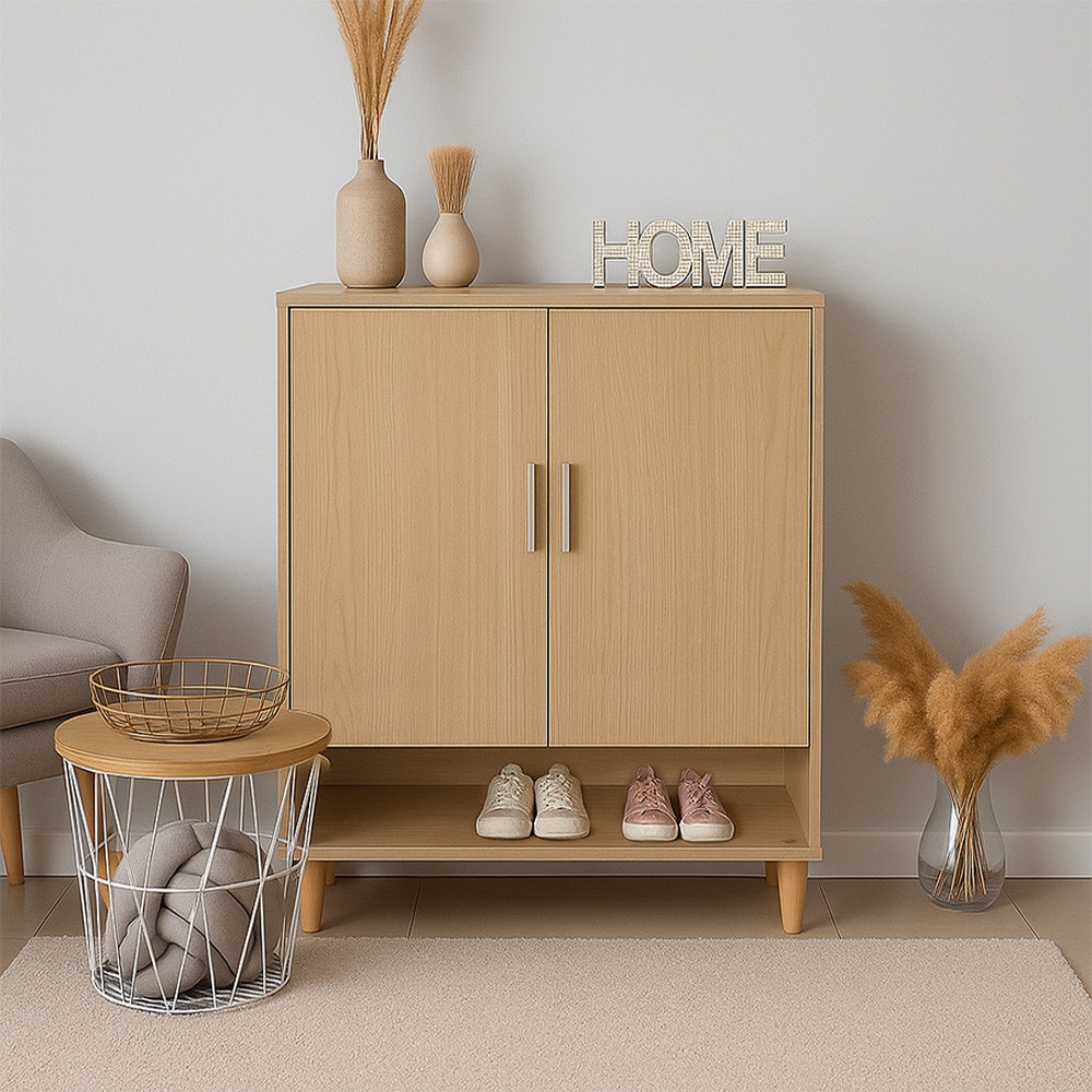 ตู้รองเท้า 2 บานเปิด ชั้นโล่งด้านล่าง 1 ช่อง ใช้สำหรับจัดเก็บรองเท้า ติดตั้งง่าย เพื่อเพิ่มพื้นที่ใช้สอยจัดเก็บรองเท้าเป็นระเบียบได้ง่ายขึ้น วัสดุคุณภาพดี แข็งแรงทนทาน