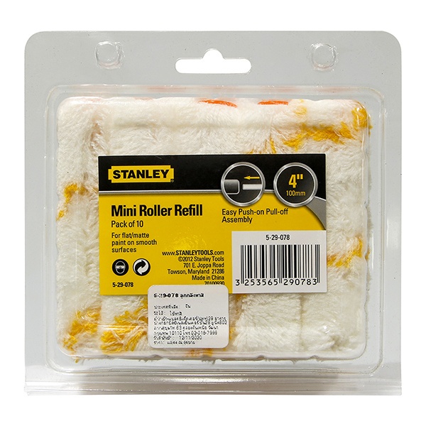 ปลอกลูกกลิ้ง จากแบรนด์ STANLEY อะไหล่ลูกกลิ้งสำหรับเปลี่ยนใส่ด้ามลูกกลิ้ง โดยใช้ทาสีน้ำและสีอะคริลิกในพื้นที่เรียบไม่ขรุขระ มีคุณสมบัติทาได้เรียบเนียนไม่ทิ้งรอยขนให้ต้องมาเก็บงานซ้ำ ลดระยะเวลาการทำงาน แม้ใช้สีที่มีความหนืดสูง ทั้งยังอุ้มสีได้ดี ทาได้พื้นที่มาก