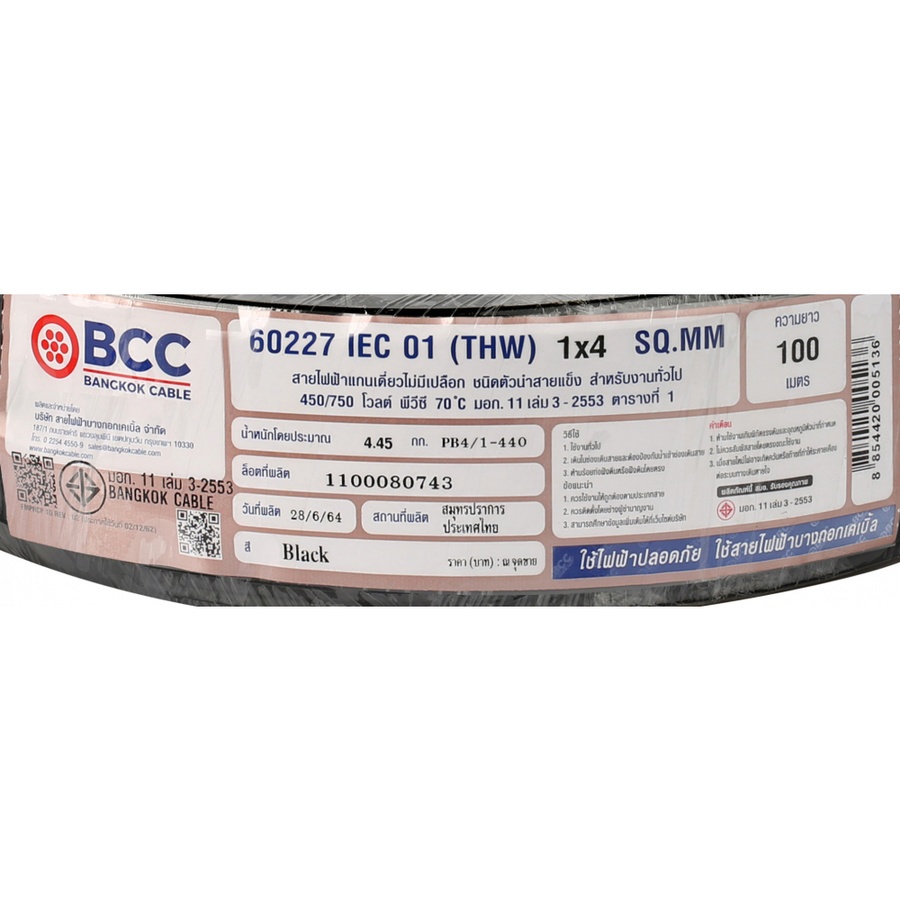 สายไฟ BCC ตัวนำไฟฟ้าทำจากทองแดงบริสุทธิ์ 99.99% ซึ่งสามารถนำไฟฟ้าได้เป็นอย่างดี และมีฉนวนที่ผลิตจากเทคโลยีขั้นสูง