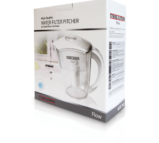 เหยือกกรองน้ำมาตรฐานจากแบรนด์ STIEBEL ตัวเครื่องผลิตจากพลาสติกคุณภาพดี ทนต่อแรงกระแทกและไม่กรอบแตกง่าย มาพร้อมไส้กรอง UF มีคุณสมบัติในการกรองเชื้อโรค, แบคทีเรีย และสารแขวนลอยต่าง ๆ ที่ปะปนมากับน้ำ โดยการกรองแบบระบบ 5 ขั้นตอน มีความละเอียดในการกรอง 0.01 ไมครอน เหมาะสำหรับใช้งานภายในบ้าน, ออฟฟิศ,สำนักงาน และคอนโด เป็นต้น