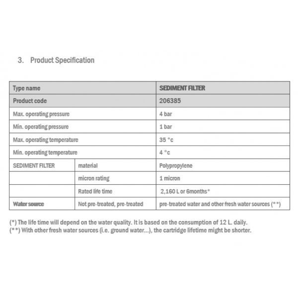วัสดุกรองขั้นต้น – โพลีโพรพิลีน ขนาด 5 ไมครอน วัสดุกรองขั้นต้นผลิตจากโพลีโพรพิลีน ช่วยกำจัดเศษ ตะกอน โคลน และอนุภาคขนาดใหญ่กว่า 5 ไมครอน เพื่อเสริมการทำงานของขั้นตอนการกรองอื่นๆ ในเครื่องกรองน้ำ Cloud ให้ทำงานได้อย่างเต็มประสิทธิภาพ