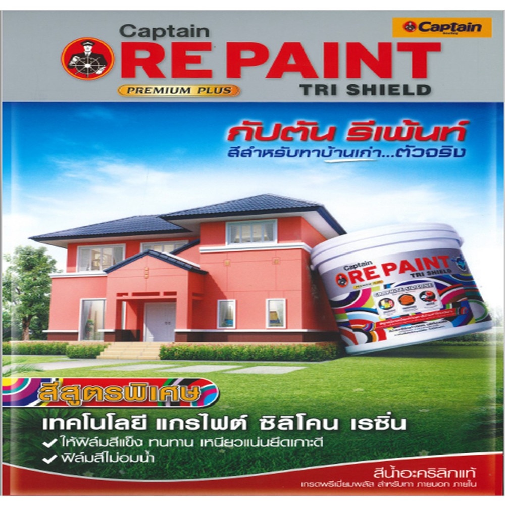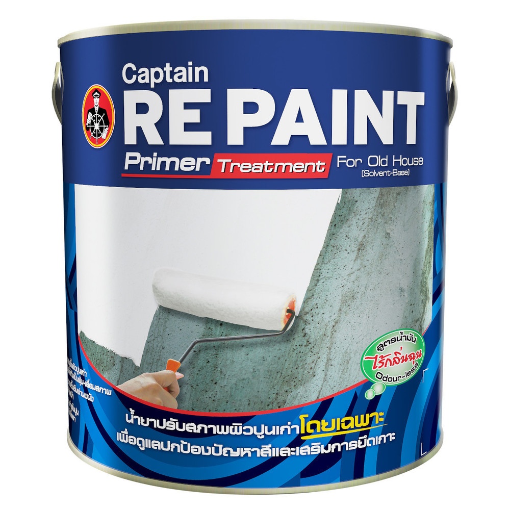 น้ำยาปรับสภาพปูนเก่า สูตรน้ำมัน กลิ่นอ่อน กัปตัน รีเพ้นท์ ไพรเมอร์ ทรีทเม้นท์ สำหรับปูนเก่าที่เสือมสภาพ