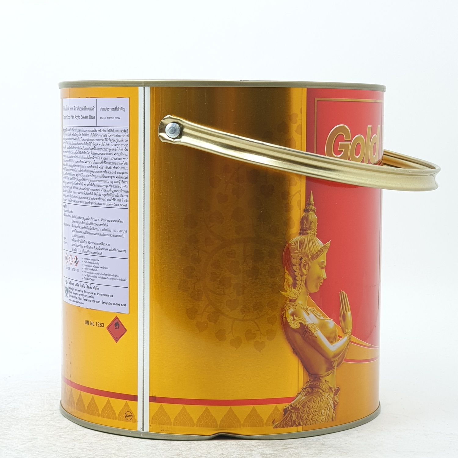 สีทองคำสูตรน้ำมัน ผลิตจากอะคริลิคแท้ 100% ผสมผงทองคำเกรดพิเศษ ใช้งานง่าย แห้งไว ให้สีทองโดดเด่น แวววาว มีความคงทนต่อสภาพอากาศภายนอกและรังสียูวี ฟิล์มสีสามารถเช็ดล้างได้ง่าย