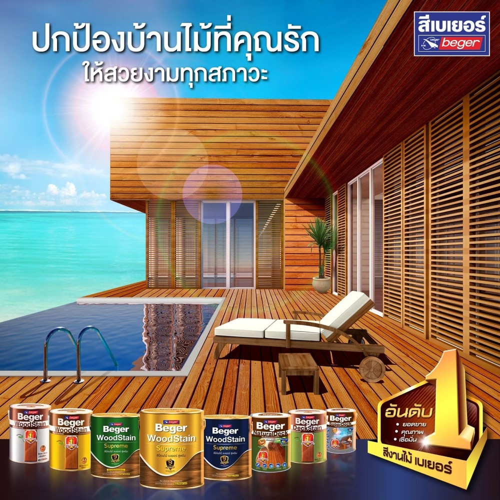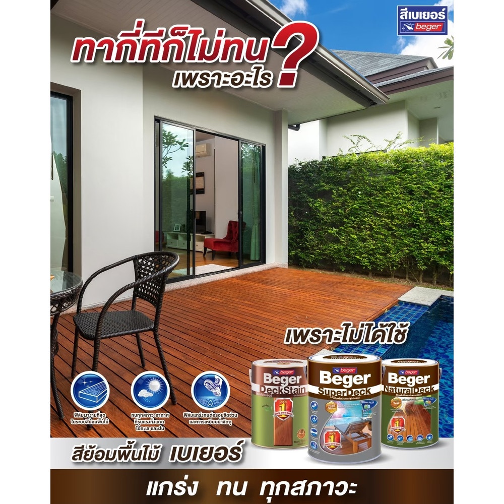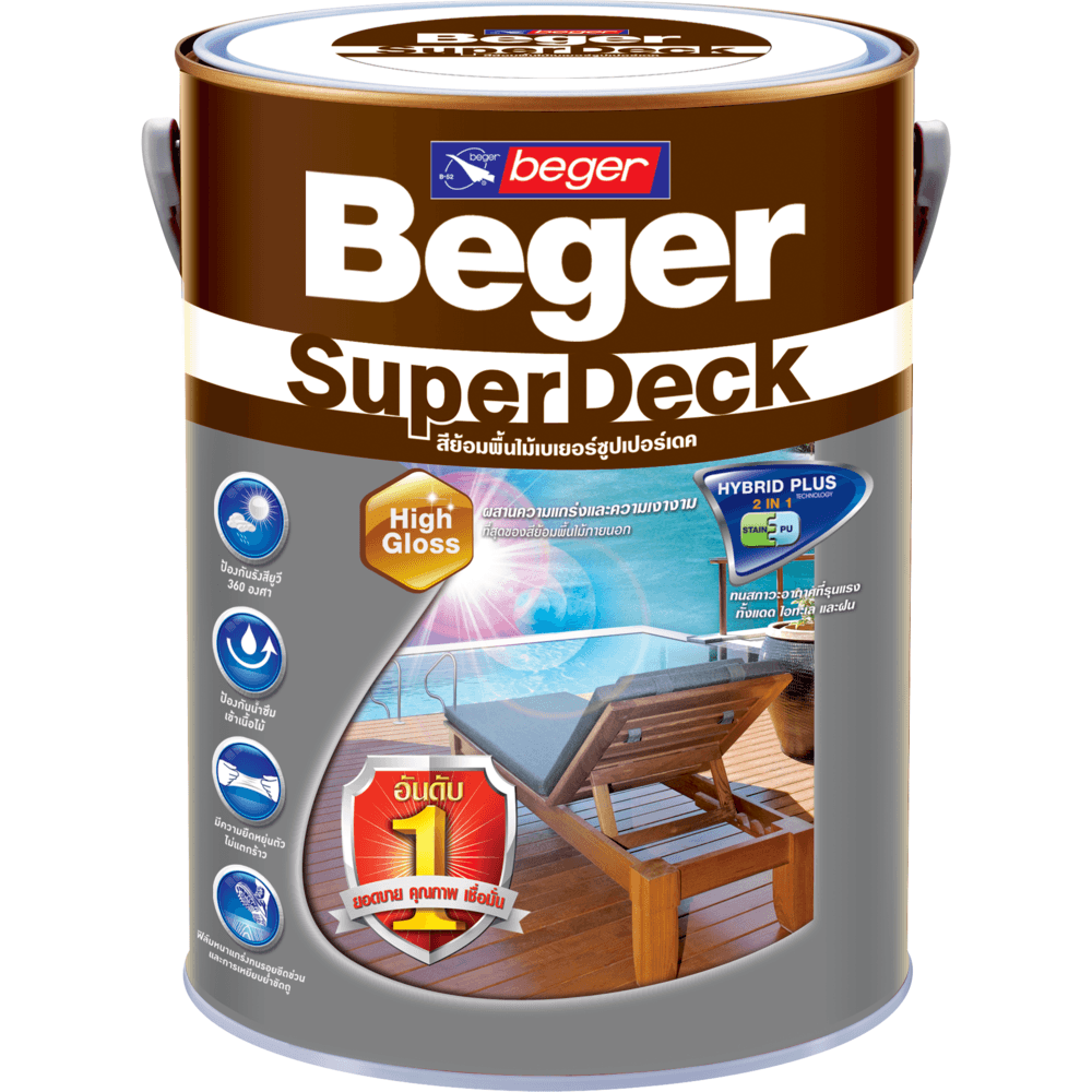 สีย้อมพื้นไม้ เบเยอร์ ซูปเปอร์เดค สีทาพื้นไม้ภายนอก ฟิล์มสีมีความเงางาม หนาแกร่ง สูงสุด ในระบบสีย้อมพื้นไม้