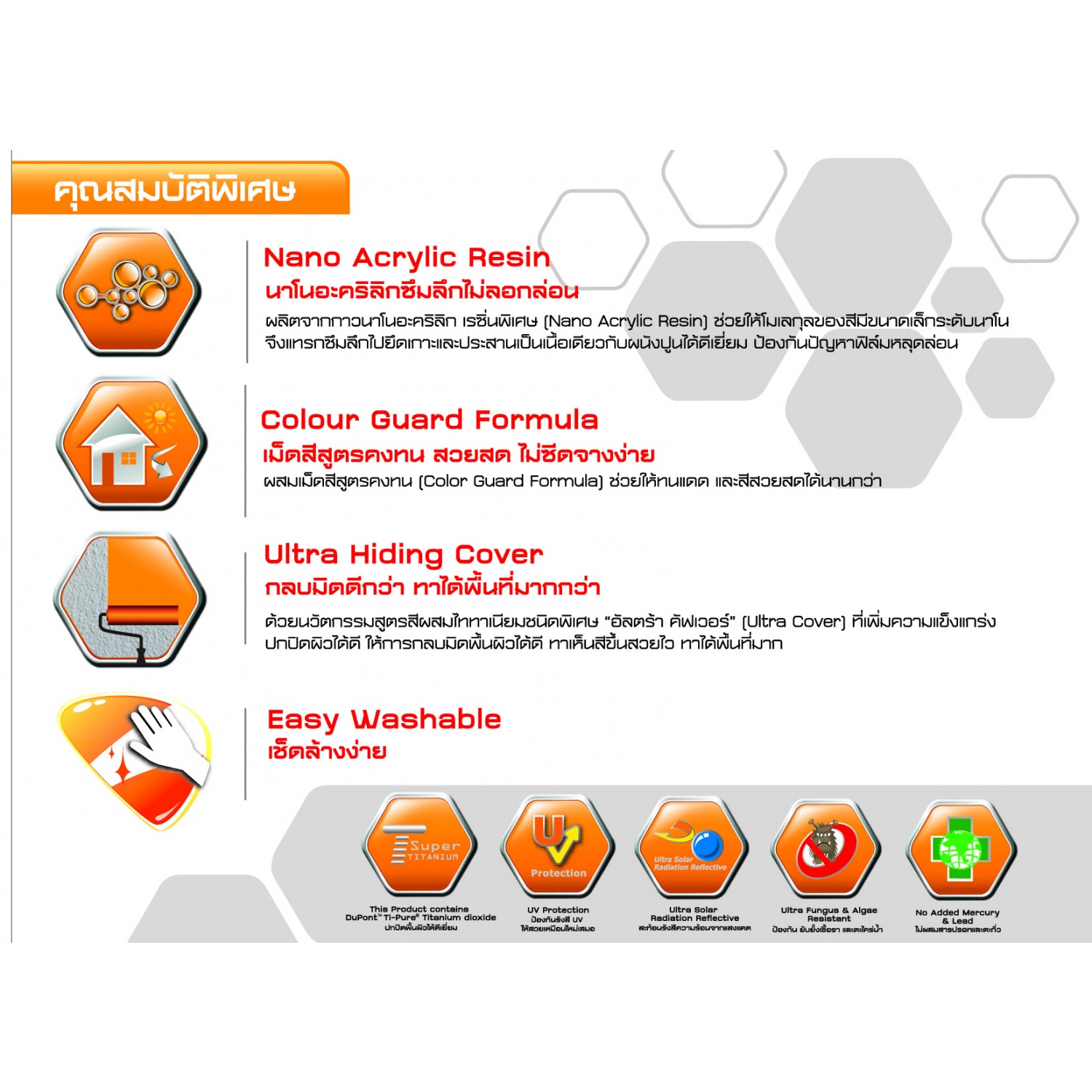 "สีกึ่งเงา สวยทน เช็ดล้างได้"