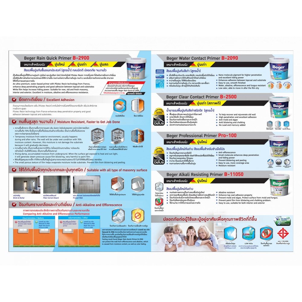 กันความชื้นภายนอก 70% ทนชื้นภายในได้ 25% ฟิล์มสีมีรูพรุนระบายความชื้น ยึดเกาะดีเยี่ยมแม้เป็นสูตรน้ำ น้ำ ด้วยเทคโนโลยีเรซิ่น จากฝรั่งเศส ช่วยให้แทรกซึมได้ลึก เนื้อสีขาว ช่วยในการกลบมิดและให้สีทาขึ้นง่าย ป้องกันการเกิดคราบด่างและคราบเกลือได้ดีเยี่ยม ปลอดสารปรอท ตะกั่ว และโลหะหนักที่เป็นอันตรายต่อร่างกาย และมีกลิ่นอ่อน Low VOCs ใช้ได้กับปูนเก่า ปูนใหม่ ปูนสด และกับปูนทุกชนิด ใช้ได้ทั้งภายนอกและภายใน