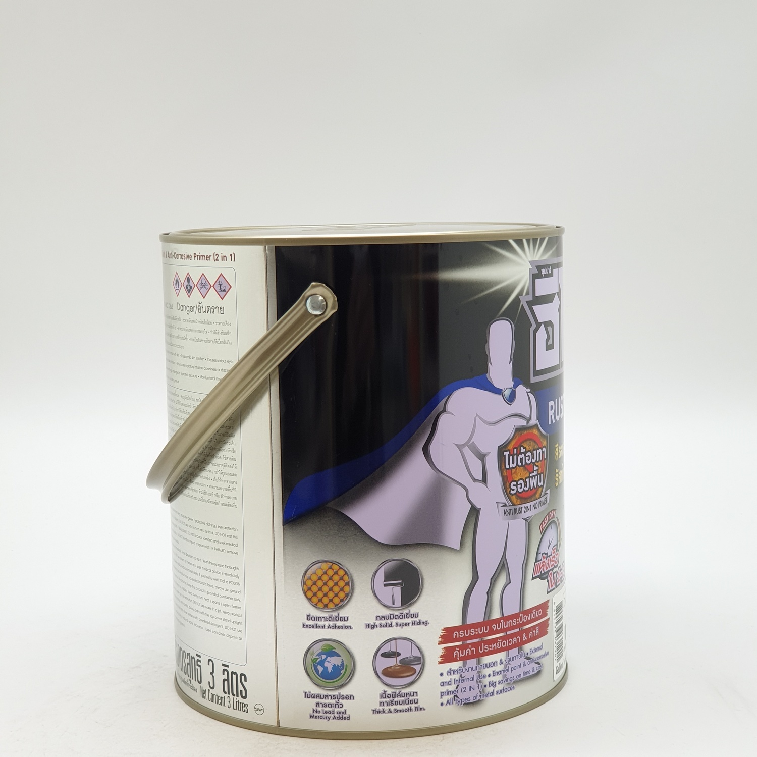 - ทาได้ทุกพื้นผิวเหล็ก โดยเฉพาะโลหะผิวมัน แม้แต่กัลวาไนซ์