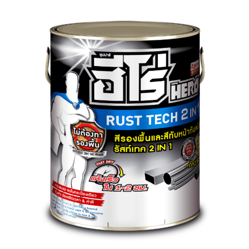 ทำความสะอาดพื้นผิว ให้ปราศจากน้ำมัน ฝุ่น ผงสนิม และคราบไข แล้วทา สีฮีโร่ รัสท์เทค 2 in 1 2 เที่ยว (ทิ้งให้แห้งสนิทระหว่างเที่ยว 2 ชั่วโมง)