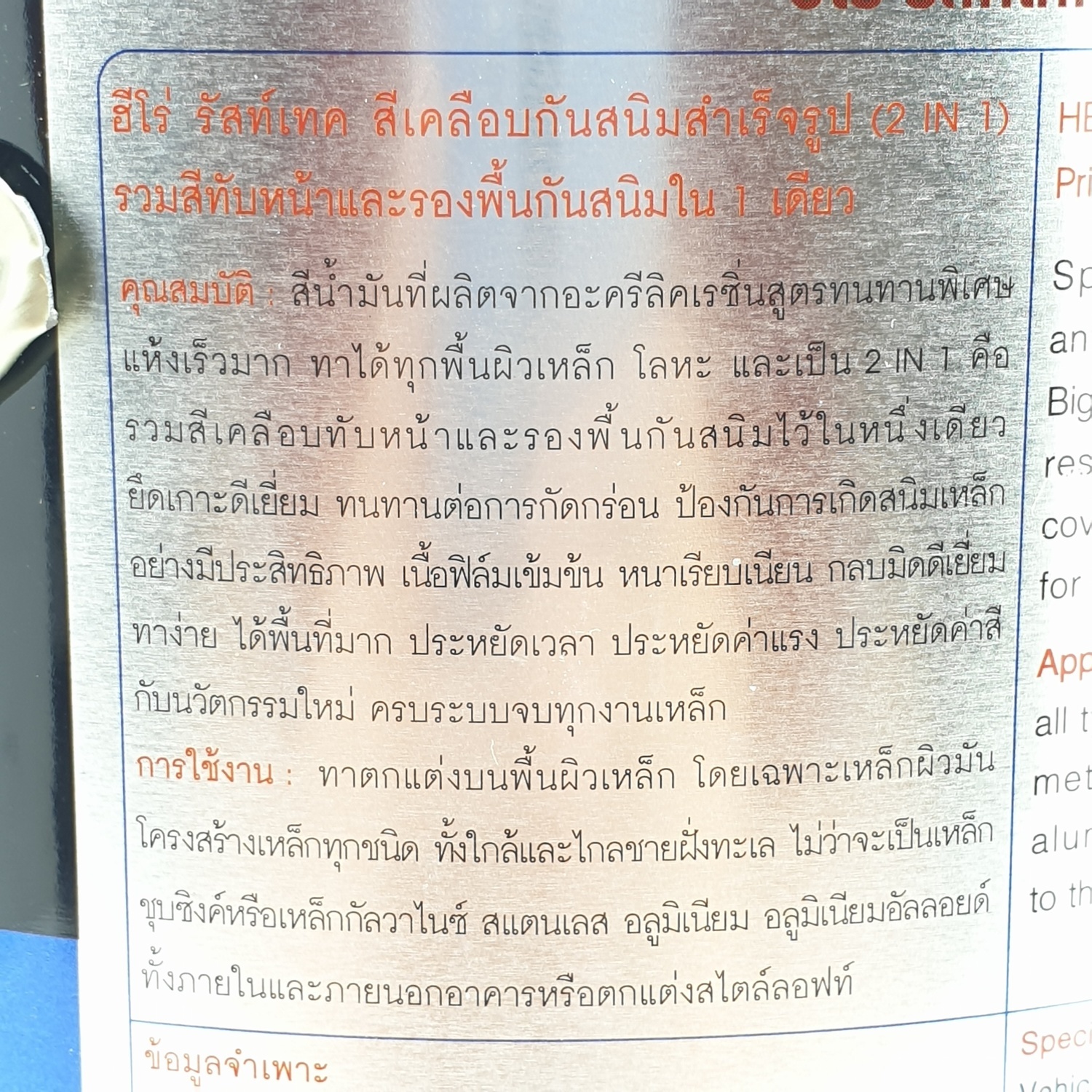 - ทาได้ทุกพื้นผิวเหล็ก โดยเฉพาะโลหะผิวมัน แม้แต่กัลวาไนซ์