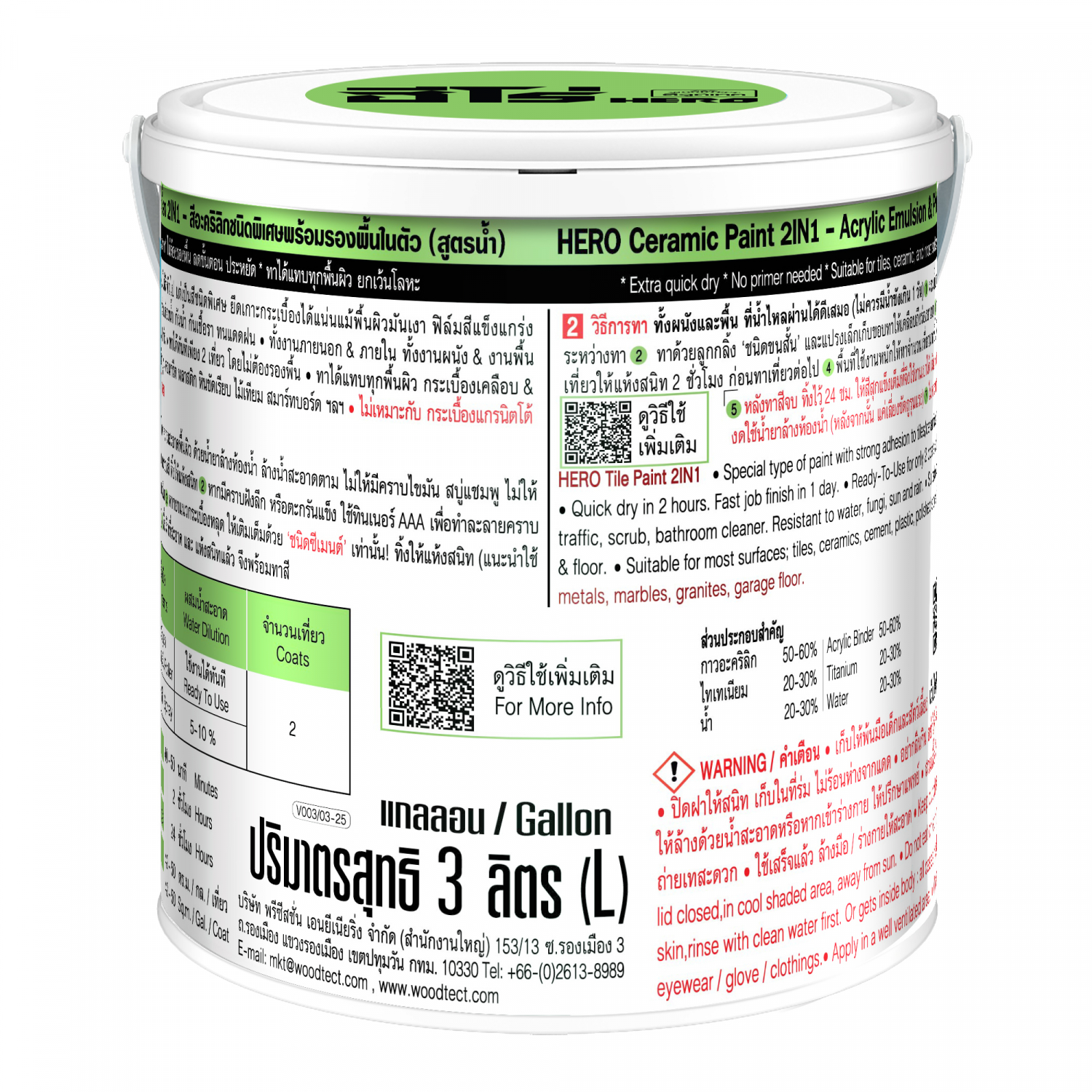 ผลิตจากอะคริลิกชนิดพิเศษ สูตรน้ำ แห้งเร็ว ไร้กลิ่นฉุน ปลอดภัยกับผู้ใช้งาน ใช้งานได้ทันทีไม่ต้องผสมน้ำ สามารถทาทับวัสดุได้หลากหลาย ได้ทั้งกระเบื้องผิวด้าน กระเบื้องเงา หิน เซรามิก ปูน ให้ฟิล์มสีเรียบเนียน สวย ใช้งานง่ายสามารถทาได้ทั้งกระเบื้องพื้นและผนัง ผสมสาร cross-link เสริมความแข็งแรง ความเหนียวของฟิล์มสี ทำให้มีความทนทานต่อสารเคมี