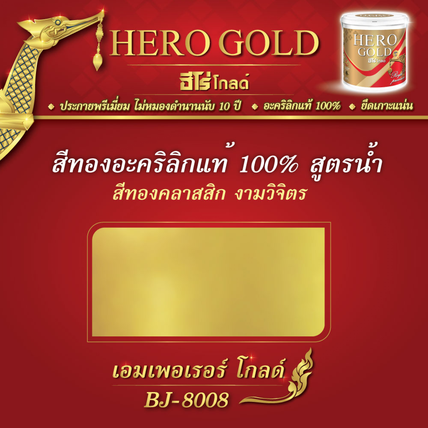วิธีการใช้งาน 1.การเตรียมพื้นผิว พื้นผิวปูนสดฉาบเสร็จ 2 วันขึ้นไป ทำความสะอาดให้ปราศจากฝุ่น ผง คราบไขมัน อุดโป๊วรอยแตกให้เรียบร้อย ใช้ฮีโร่ ควิกไพรเมอร์รองพื้นปูนกันชื้น อเนกประสงค์(H-1000) ทา 1 เที่ยว ทิ้งให้แห้งสนิท พื้นผิวปูนใหม่ ทิ้งให้ผิวแห้งสนิทอย่างน้อย 1 เดือน ทำความสะอาดให้ปราศจากฝุ่น ผงและเศษซีเมนต์ คราบน้ำ ไขมัน พื้นผิวปูนเก่า ขัดล้างสีเดิมที่ เสื่อมสภาพออกให้หมด(ห้ามใช้แปรงลวด) บริเวณที่มีรอยแตกร้าว ให้อุดโป๊วด้วยอะคริลิก บริเวณที่มีเชื้อรา หรือตะไคร่น้ำ ต้องขัดล้างด้วยน้ำ ทิ้งให้แห้งสนิท 12-24 ชั่วโมง จากนั้นทาด้วยน้ำยาฆ่าเชื้อรา และตะไคร่น้ำ (CK-001) และรองพื้นปูนเก่า (CP-102) จำนวน 1 เที่ยว 2.การทาสี ทาสี ฮีโร่ สีทอง สูตรน้ำ จำนวน 2-3 เที่ยว / พ่น จำนวน 3-4 เที่ยว หรือ ทาสีรองพื้นด้วยสีน้ำงานปูนเกรดสูง เช่น ฮีโร่ สีทาหลังคา อเนกประสงค์ (H2-R101 , H2-R202 , H2-R100) จำนวน 1-2 เที่ยว แล้วทาทับด้วย ฮีโร่ สีทอง สูตรน้ำ เพื่อเฉดสีทองแวววาวแตกต่างกัน