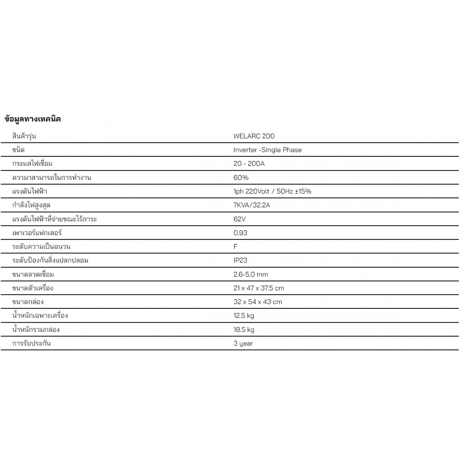 | รุ่น | WELARC 200 |