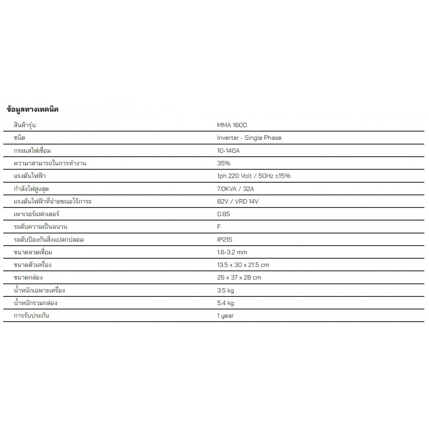| รุ่น | MMA 160D |