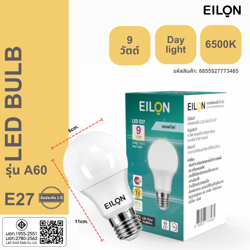 | รุ่น | หลอด EILON#LED-Bulb 806LM 865 9W A60 E27 |