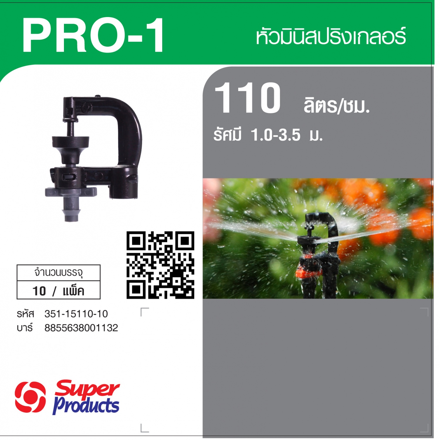 Super Products Pro-1 110 หัวมินิ 110 ลิตร สีเทา (10 หัว)