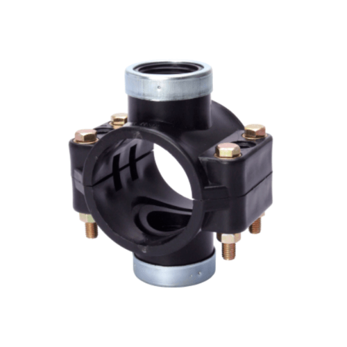 แคลมป์รัดแยก (Saddle Clamp) ใช้สําหรับแยกท่อแขนงออกจากท่อประธานหรือท่อรองประธาน การใช้แคลมป์รัดแยกมีข้อดีกว่าการใช้ข้อต่อสามทาง ดังนี้