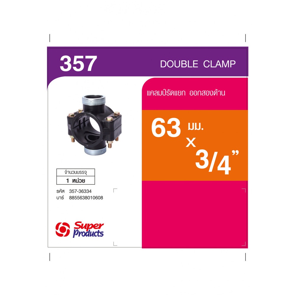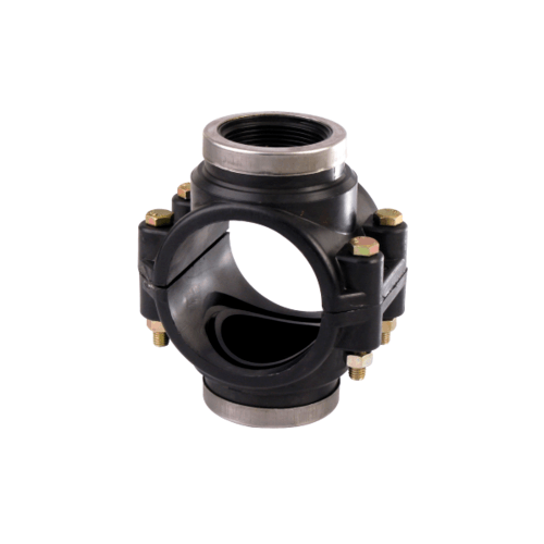 แคลมป์รัดแยก (Saddle Clamp) ใช้สําหรับแยกท่อแขนงออกจากท่อประธานหรือท่อรองประธาน การใช้แคลมป์รัดแยกมีข้อดีกว่าการใช้ข้อต่อสามทาง ดังนี้• ไม่จําเป็นต้องตัดต่อท่อ • โอกาสเกิดการรั่วซึมน้อยกว่า • สูญเสียแรงดันน้อยกว่า • การติดตั้งง่ายกว่า • สามารถต่อแยกออก 2 ฝั่งได้(ในกรณีใช้แคลมป์รัดแยกออกสองทาง) ในขณะที่ข้อต่อสามทางแยกออกได้ฝั่งเดียว