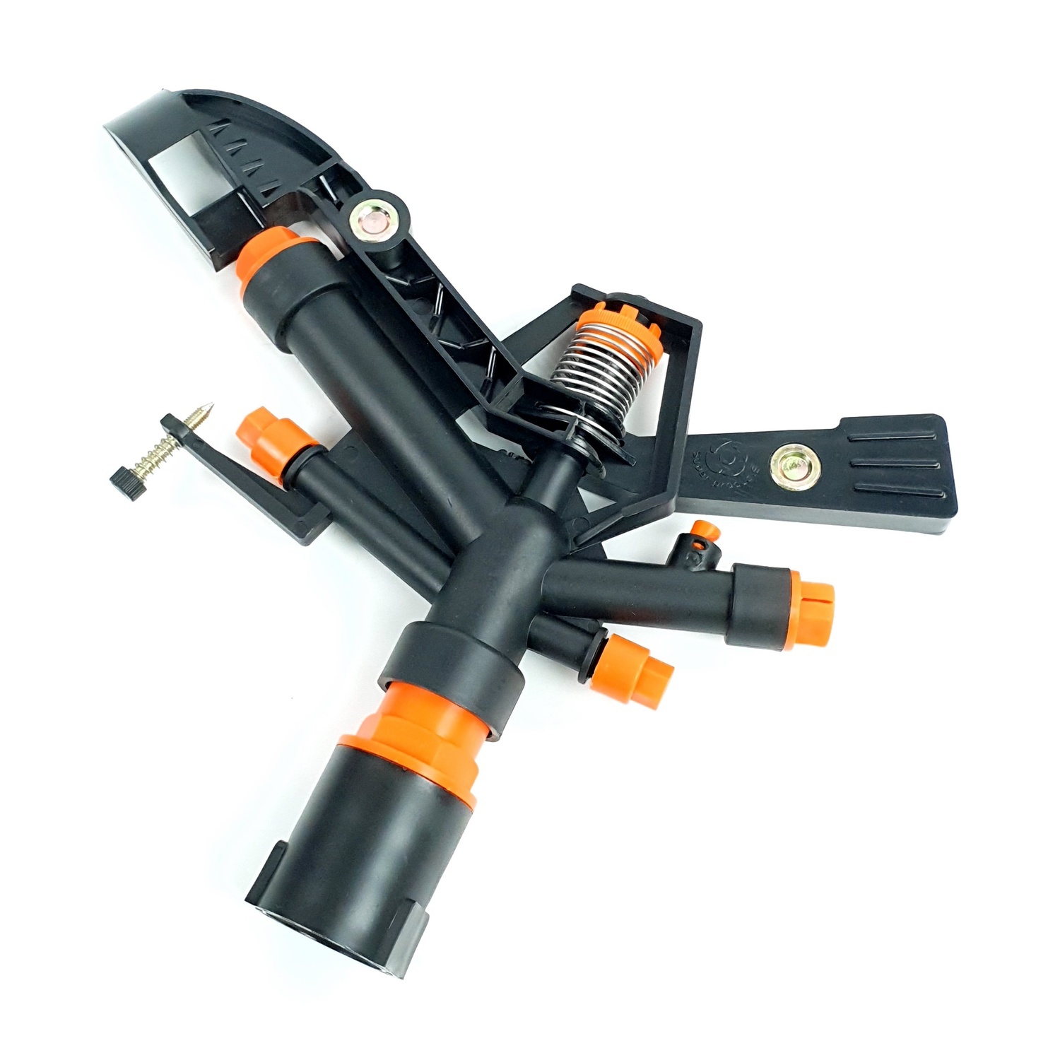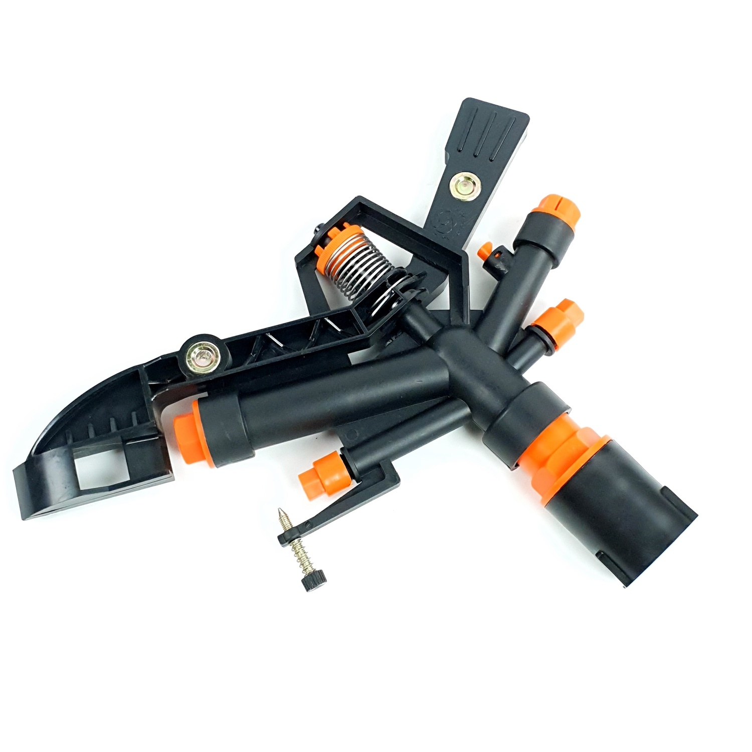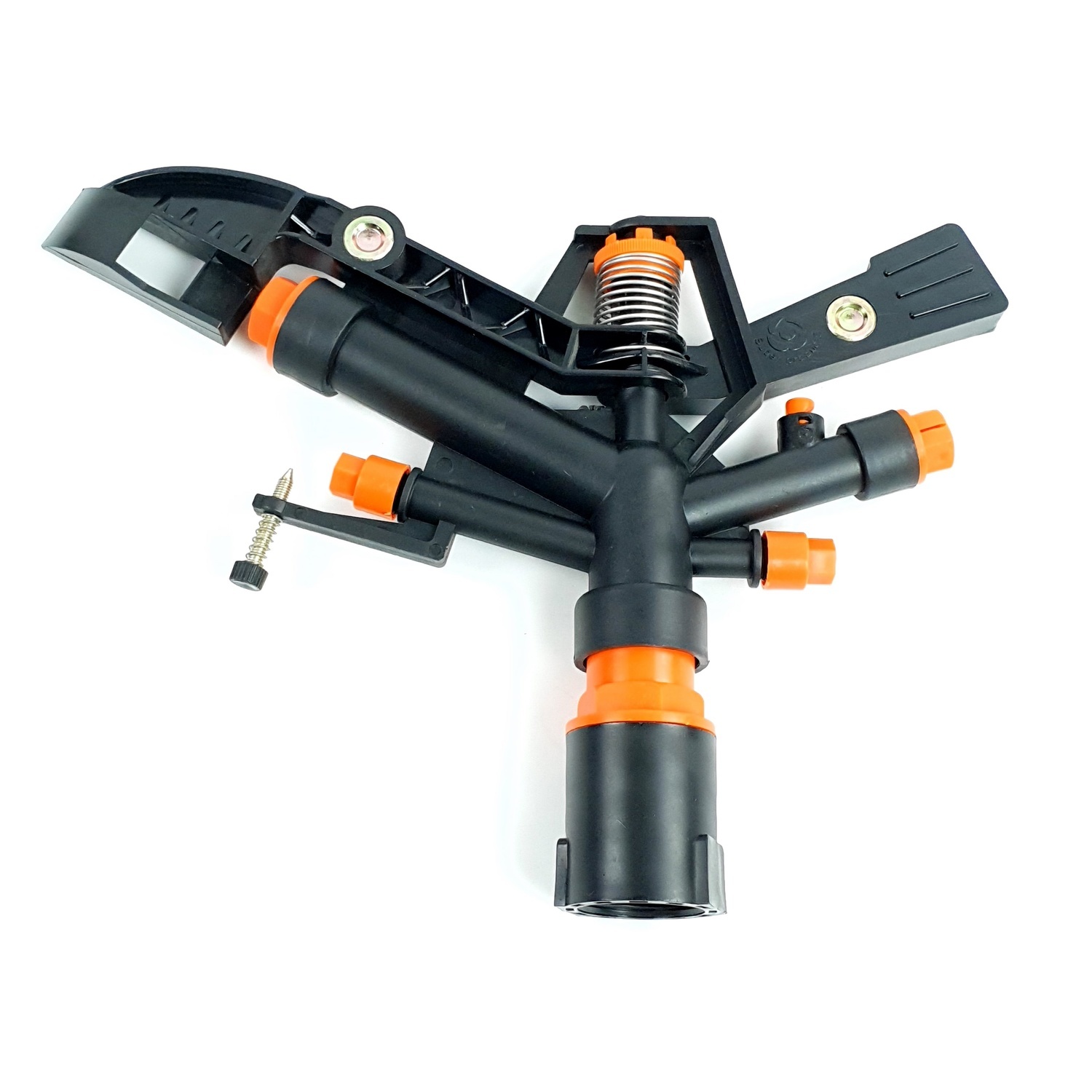 ไปรอบๆด้วยขาตีซึ่งจะถูกลํานํ้าดันให้พ้นจากเส้นทางยิงของหัวฉีดและถูกดีดกลับมาด้วยแรงสปริงไปปะทะกับส่วนด้านหลังของของตัว สปริงเกลอร์เพื่อให้เคลื่อนที่ไปในทิศทางที่แขนปะทะ ทําให้ลํานํ้าหมุนไปรอบๆได้ หากแบ่งตามลักษณะการทํางาน สามารถแยกย่อยได้เป็น 2 ประเภทได้แก่