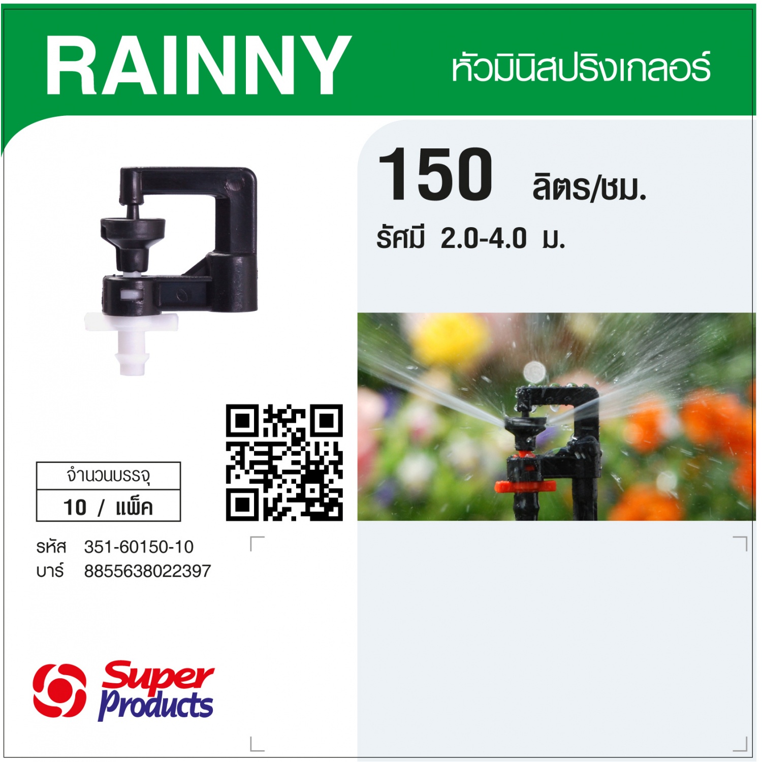 Super Products RAINNY 150 หัวมินิสปริงเกลอร์ สีขาว (10 หัว)