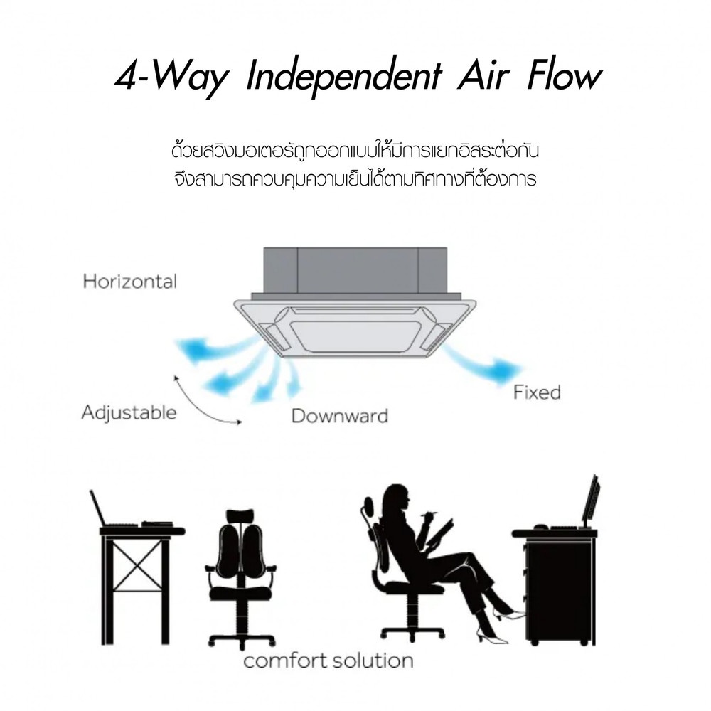ด้วยสวิงมอเตอร์ถูกออกแบบให้มีการแยกอิสระต่อกัน จึงสามารถควบคุมความเย็นได้ตามทิศทางที่ต้องการ