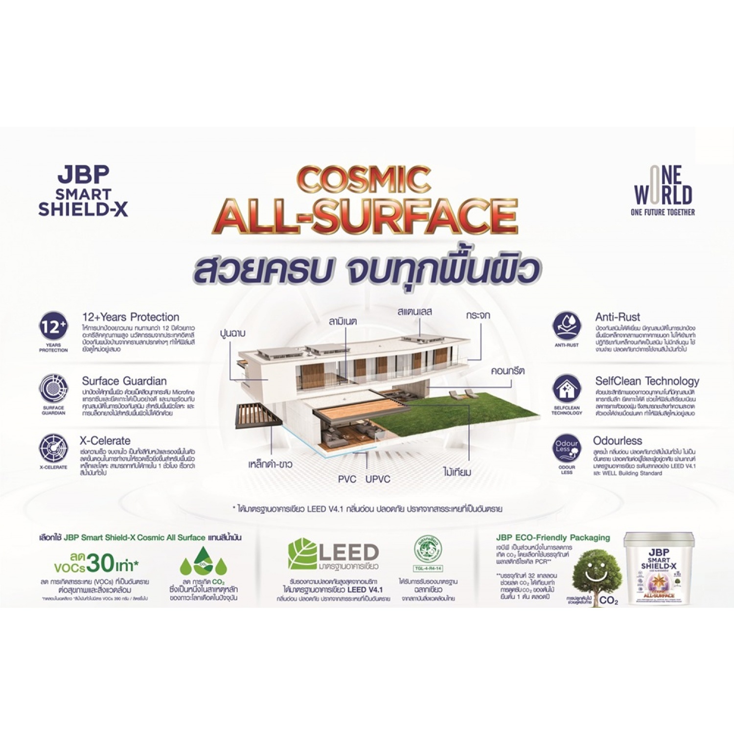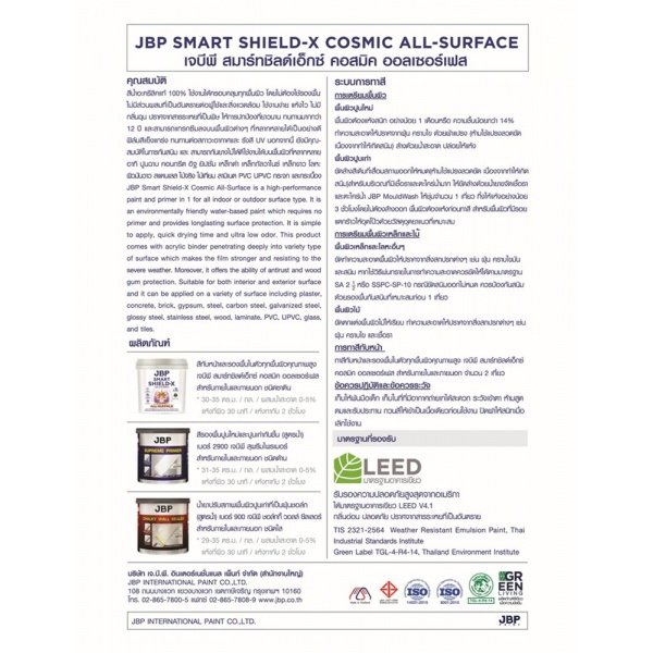 เจบีพี สมาร์ทชิลด์เอ็กซ์ คอสมิค ออลเซอร์เฟส ไม่มีส่วนผสมของสารปรอทและสารตะกัวปราศจากสารระเหยที่เป็นพิษ