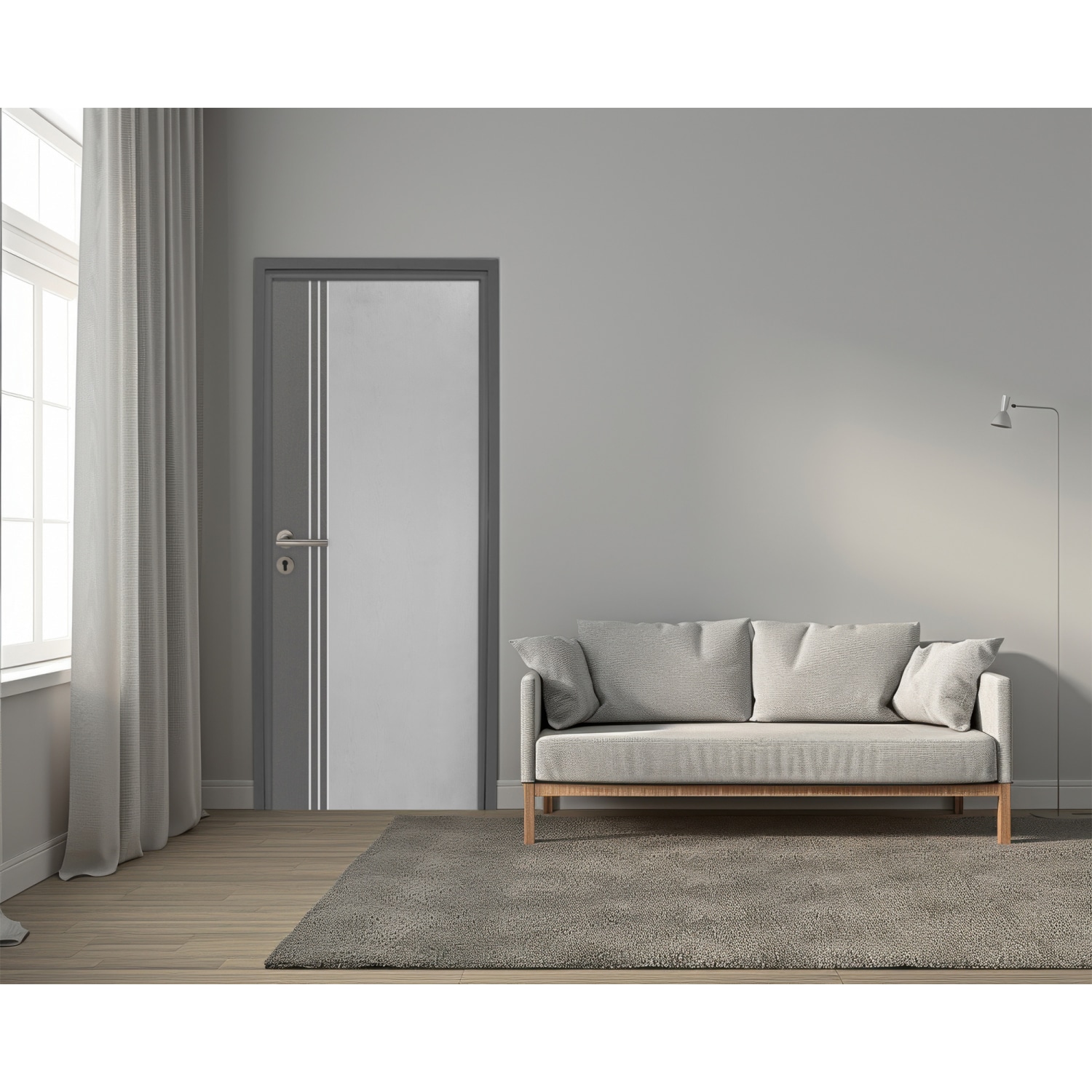 WELLINGTAN  ประตู uPVC ผิว Revo เซาะร่อง (สำหรับใช้ภายนอกเเละภายใน) WMN028  80x200 สีทูโทน ขาว/เทา  เจาะ