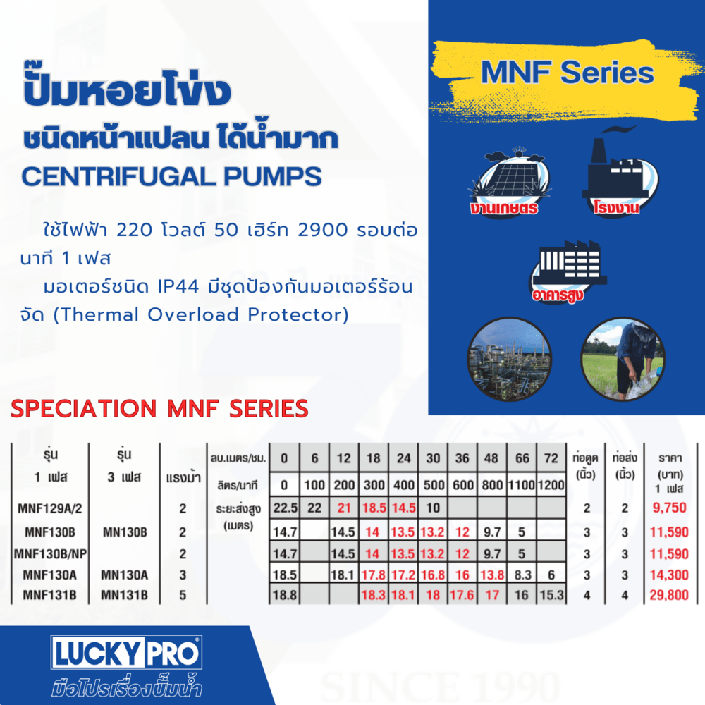 ปั๊มหอยโข่งชนิดหน้าแปลน ชนิดน้ำมาก แรงดันปานกลางใช้กับน้ำสะอาด รุ่น LP-MNF130B ขนาด 2 แรงม้า