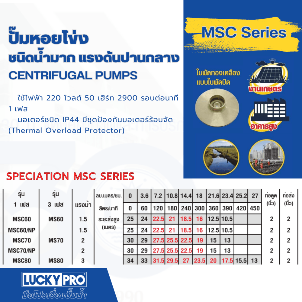 * ใบพัดและฝาครอบทำจากทองเหลืองไม่เป็นสนิม