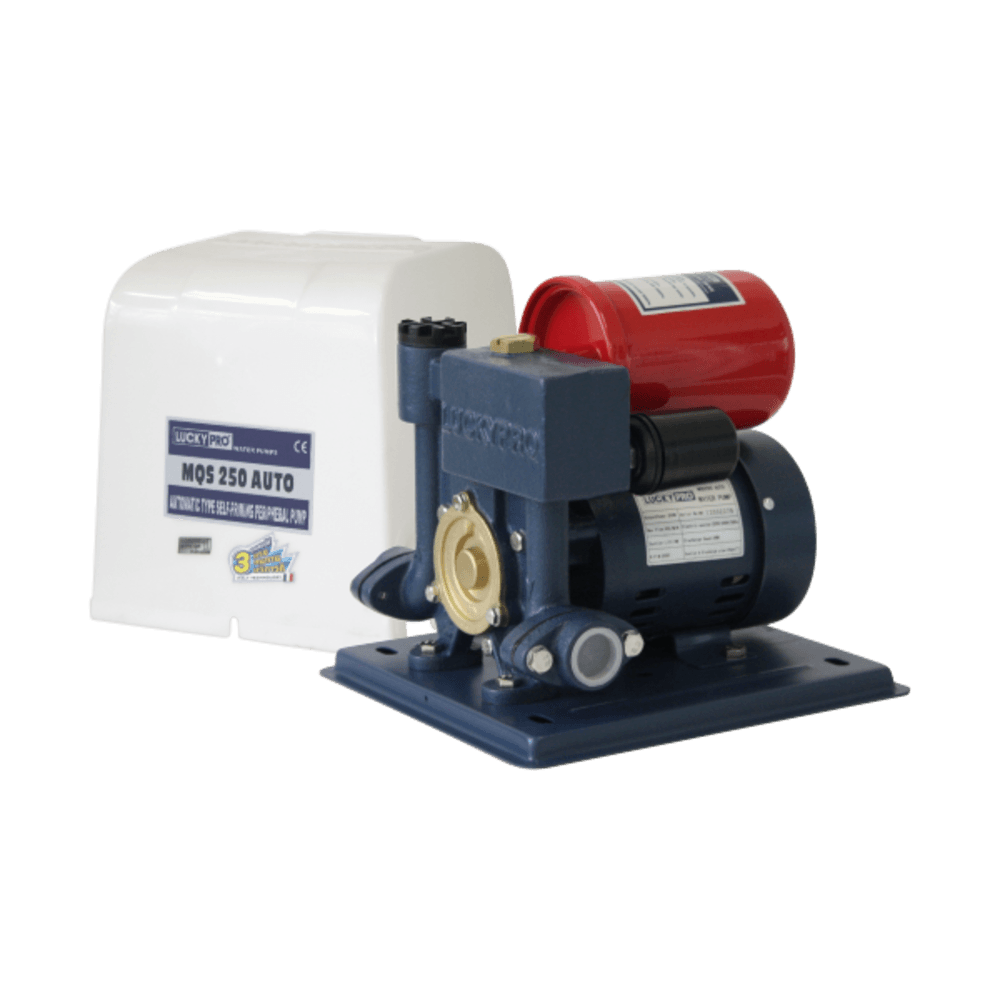 ปั๊มอัตโนมัติสำหรับน้ำประปา , บ่อน้ำตื้น พร้อมฝาครอบปั๊มน้ำ สีขาว รุ่น LP-MQS250A ขนาด 250 วัตต์
