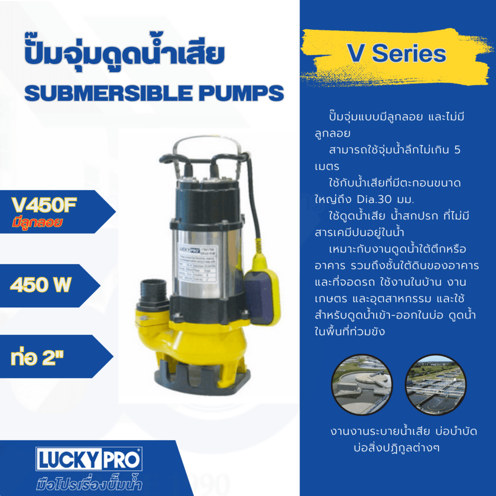 ปั๊มจุ่มน้ำสแตนเลสดูดน้ำเสีย แบบมีลูกลอย รุ่น LP-V450F ขนาด 450 วัตต์