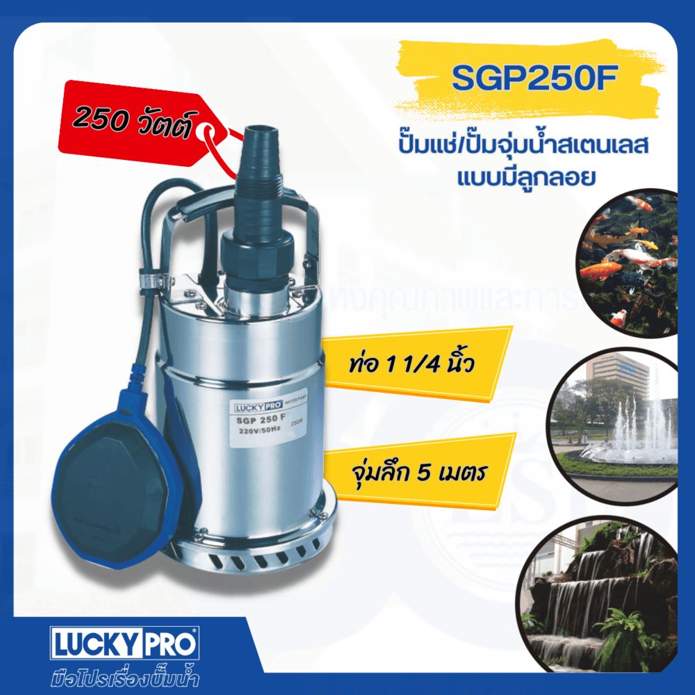 ปั๊มจุ่มน้ำสแตนเลส แบบมีลูกลอย รุ่น LP-SGP250F ขนาด 250 วัตต์