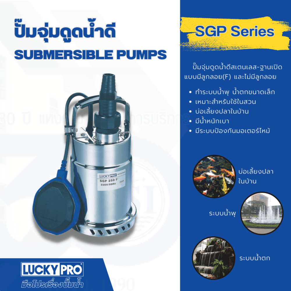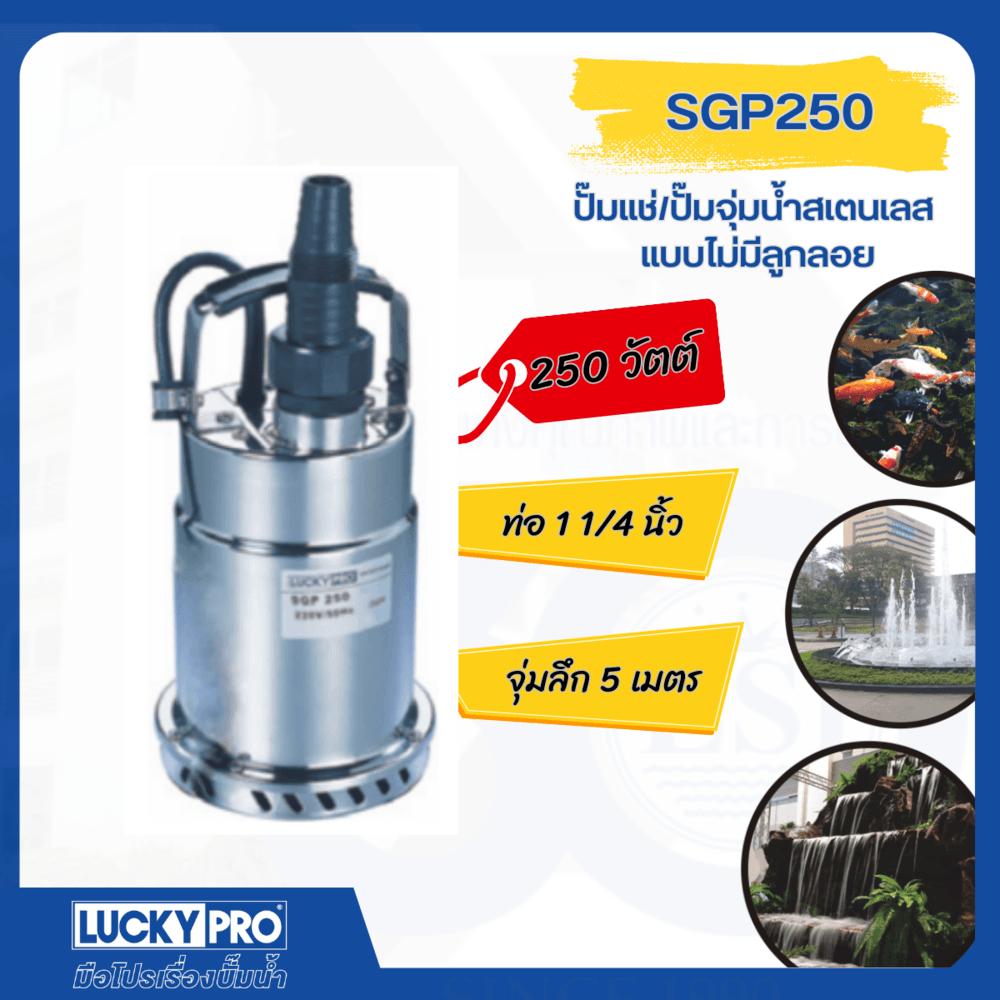 ปั๊มจุ่มน้ำสแตนเลส แบบไม่มีลูกลอย รุ่น LP-SGP250 ขนาด 250วัตต์