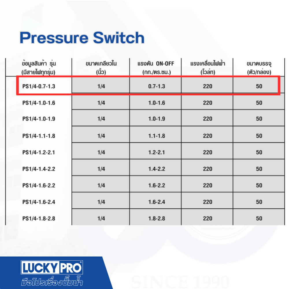 Pressure Switch เกลียวนอก ใช้ไฟฟ้า 220 โวลต์