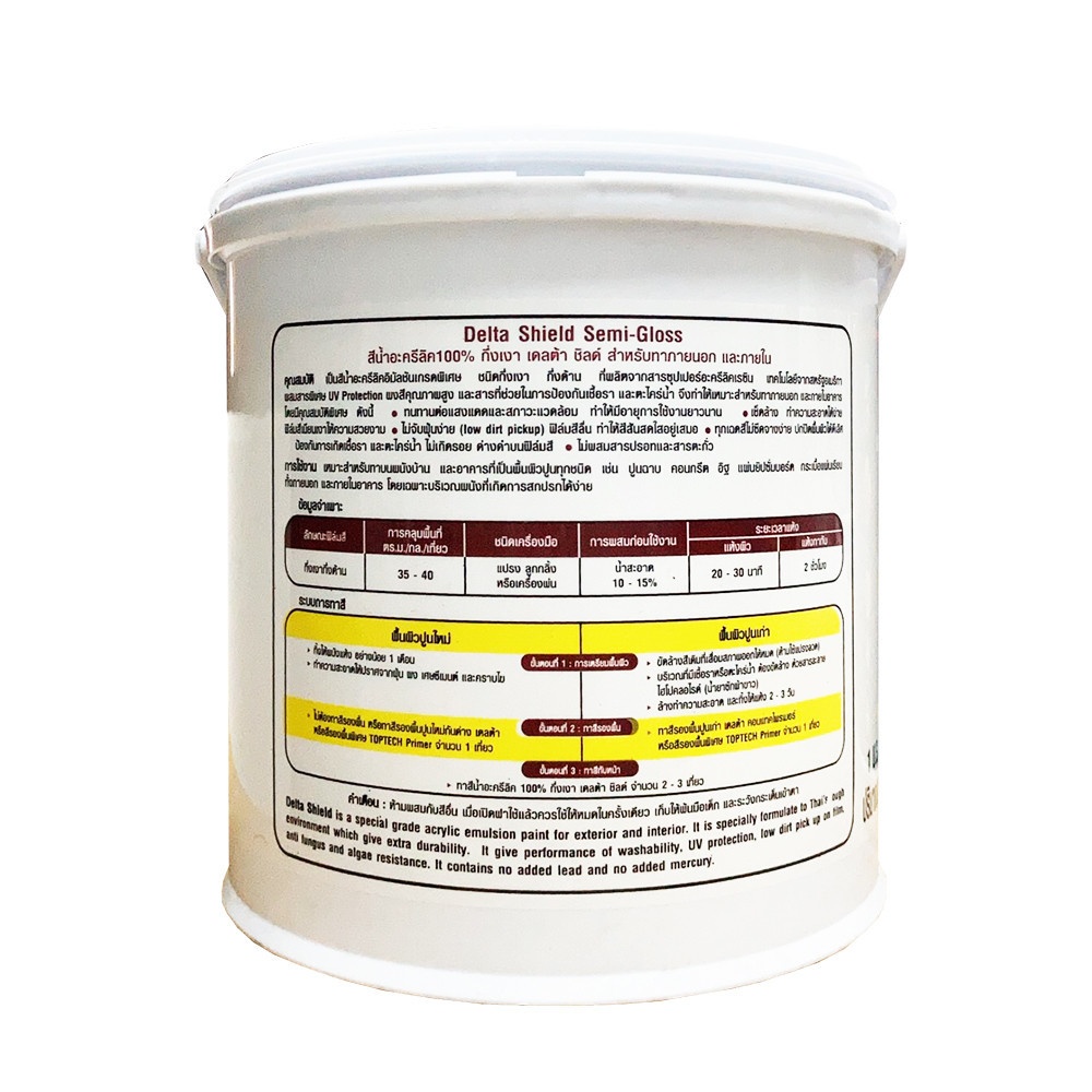 สีน้ำอะครีลิค 100% ชนิดกึ่งเงากึ่งด้านสำหรับภายนอกและภายใน เป็นสีมีคุณภาพและมีประสิทธิภาพที่ปกป้องคุ้มครองอาคารได้อย่างยอดเยี่ยม มีความทนทานสูงปกป้องพื้นผิวบ้านและอาคารจากมลภาวะตลอดจนการกัดกร่อน มีประสิทธิภาพในการยึดเกาะบ้านและอาคารสูงถึง 3เท่า สีไม่ซีดจาง เพราะมีสาร UV Protection ให้สีสวยทนนานด้วยเทคโนโลยี Salf Cleaning ที่มีคุณสมบัติต่อต้านการเกาะตัวของฝุ่นผง สิ่งสกปรก ทำให้ไม่ว่าจะผ่านที่สภาวะ Delta Shield ก็ให้สีสวยทนนานไปอีกนาน