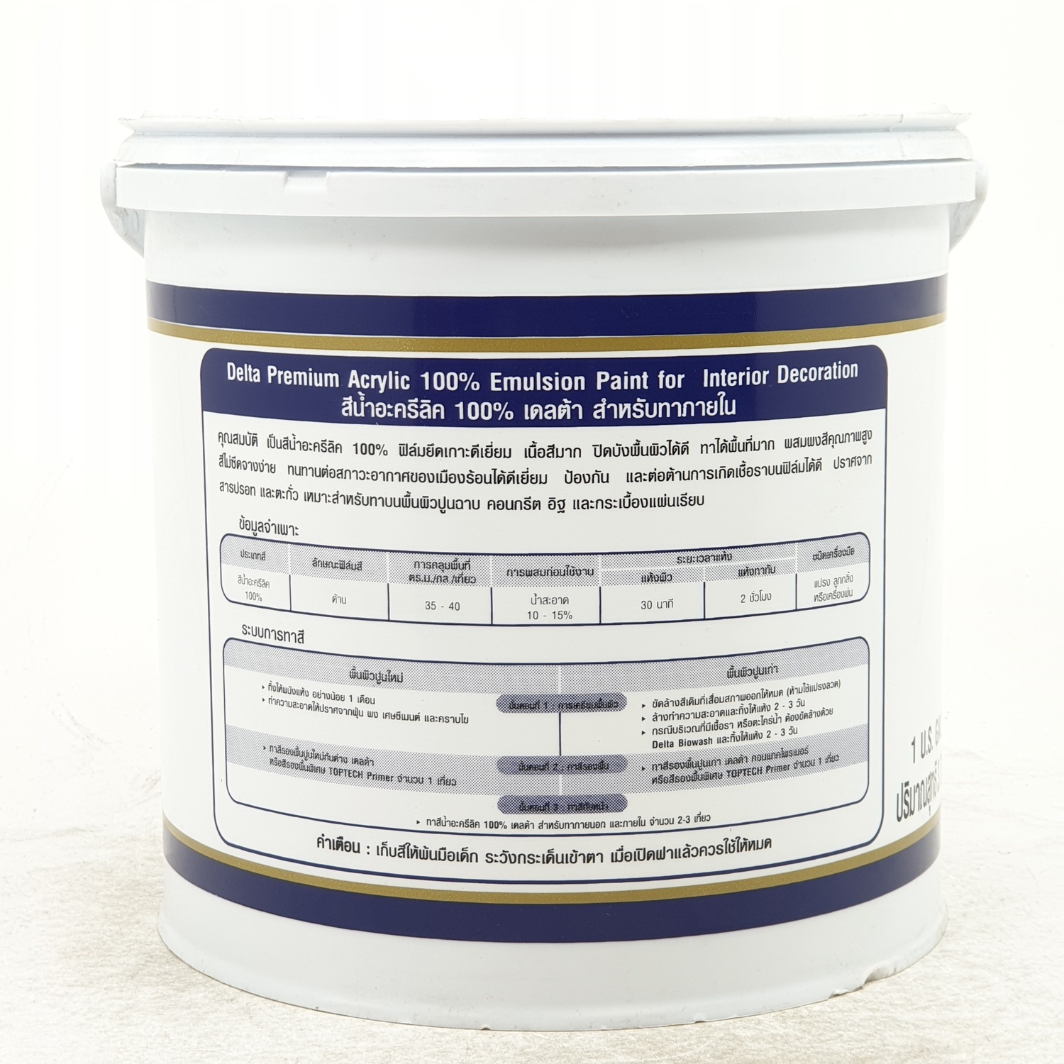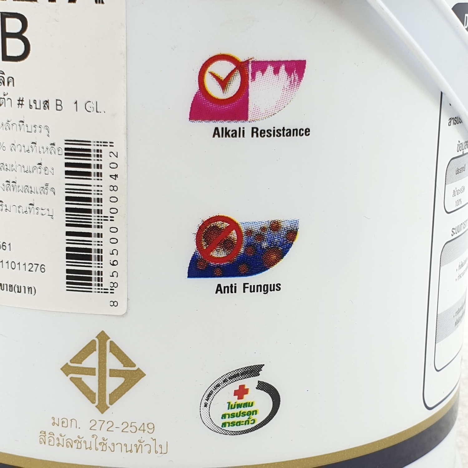 สีน้ำอะครีลิคแท้ ชนิดด้าน ฟิล์มสียึดเกาะดีเยี่ยม เนื้อสีมาก ผสมผงสีคุณภาพสูง สีไม่ซีดจาง ทนทานต่อสภาวะอากาศ ป้องกันและต่อต้านการเกิดเชื้อราบนฟิล์มสีได้ดี ปราศจากสารปรอท และตะกั่ว เหมาะสำหรับภายใน