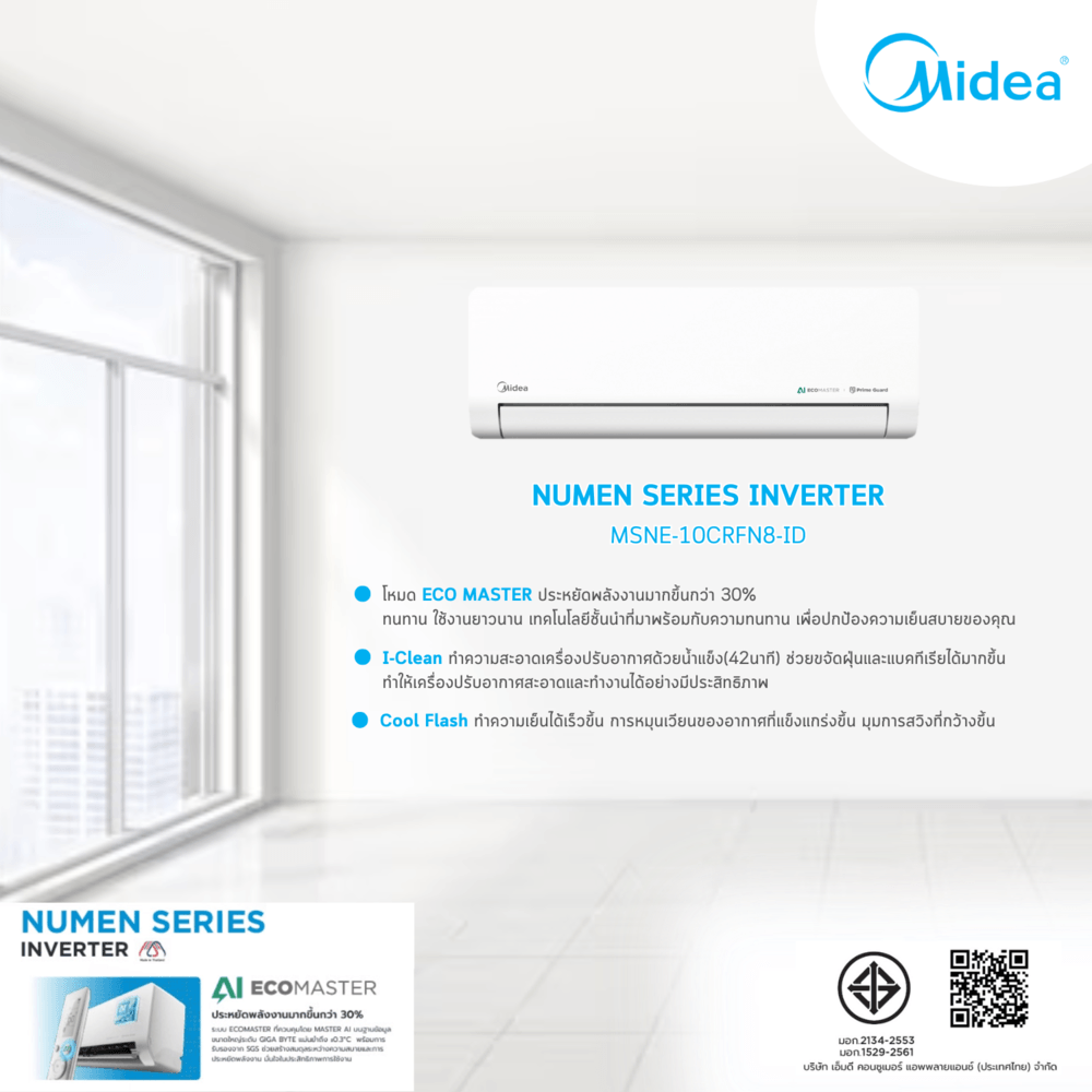 -Power Cooling Beats The Heat เครื่องปรับอากาศ MIDEA INVERTER ทำงานได้อย่างมีประสิทธิภาพแม้ในอุณหภูมิสูงถึง 60 องศา มอบความเย็นที่ดีที่สุดให้ห้องของคุณ