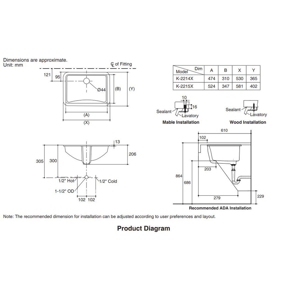| รุ่น | ลาดีน่าK2215X **ไม่รวมก๊อก** |