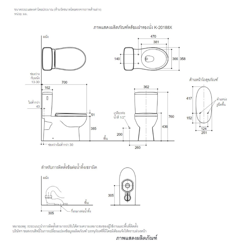 | รุ่น | แพททิโอ พร้อมฝารองนั่งแบบกันกระแทก K-22586X-S-0 |