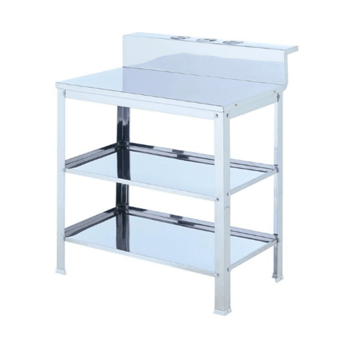 โต๊ะวางเตาคู่ สำหรับเตาแก๊ส ขนาดกลาง 2 หัวเตา พร้อมชั้นวาง 2 ชั้น และ ช่องใส่ขวด 3 ช่อง เป็นสเตนเลสทั้งตัว ชนิด #430 Ba Full Body แข็งแรง ทนทาน รับน้ำหนักได้มาก ไม่เป็นสนิม