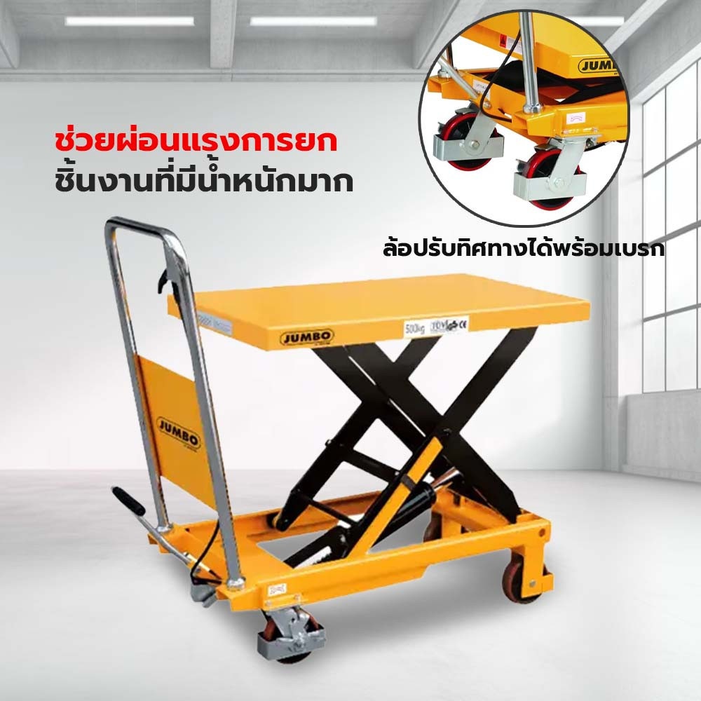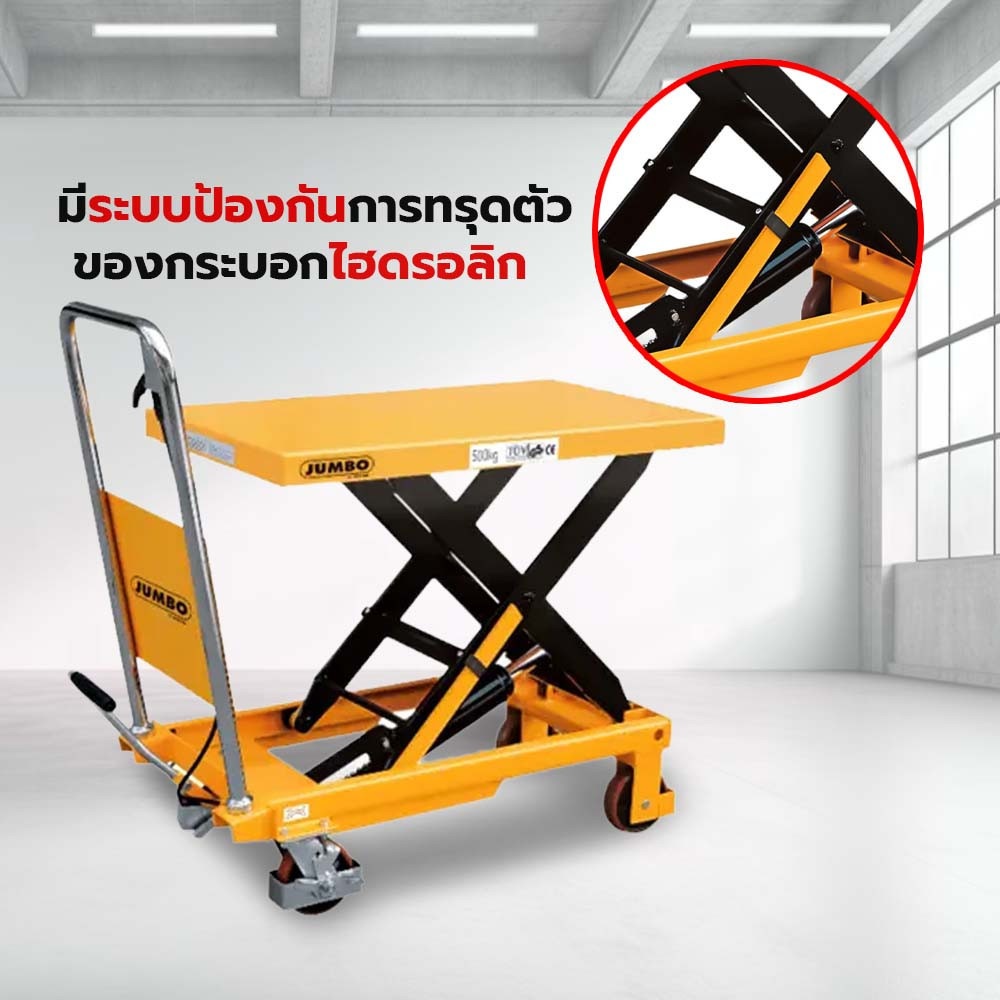 ช่วยผ่อนแรงการยกชิ้นงานที่มีน้ำหนักมาก ลดระดับได้รวดเร็ว ล้อปรับทิศทางได้พร้อมเบรก เพิ่มความปลอดภัยระหว่างใช้งาน มีระบบป้องกันการทรุดตัวของกระบอกไฮดรอลิก ดูแลรักษาง่าย ไม่ยุ่งยาก