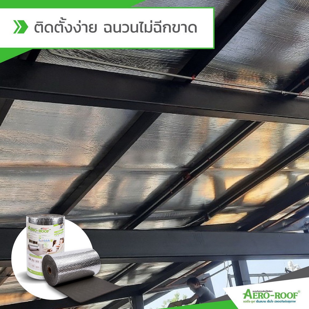 AERO-ROOF ฉนวนยางชนิดแผ่นม้วนเคลือบอลูมิเนียมฟอยล์เสริมเส้นใย