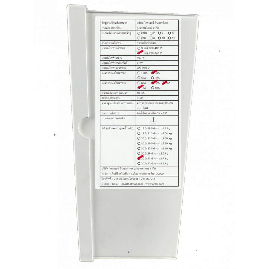 * เมนเบรกเกอร์ = 63 A ลูกเซอร์กิต - 10A 16A 20A 32A