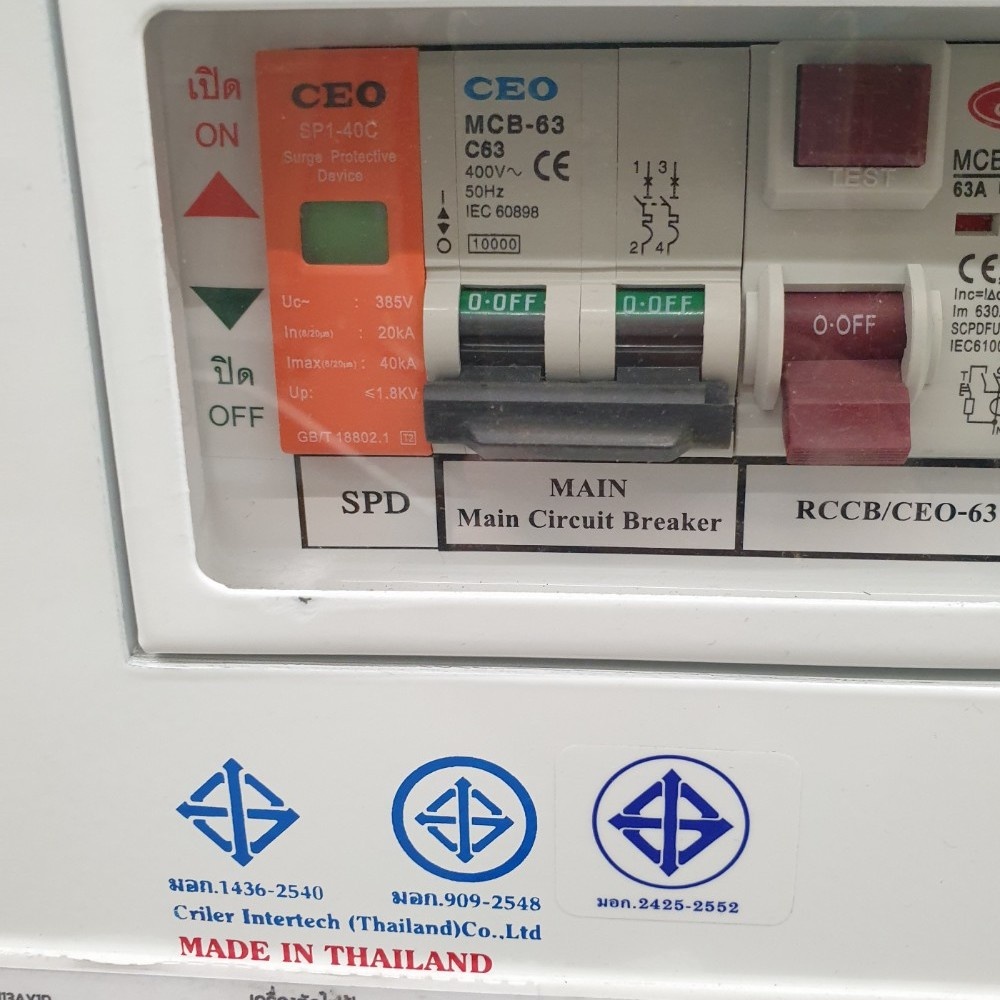 * เมนเบรกเกอร์ = 63 A ลูกเซอร์กิต - 10A 16A 20A 32A