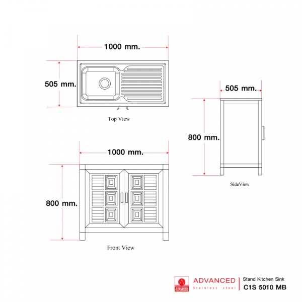 ตู้ซิงค์ขนาด (มม.) : 500x1000x800 (กว้างxยาวxสูง)