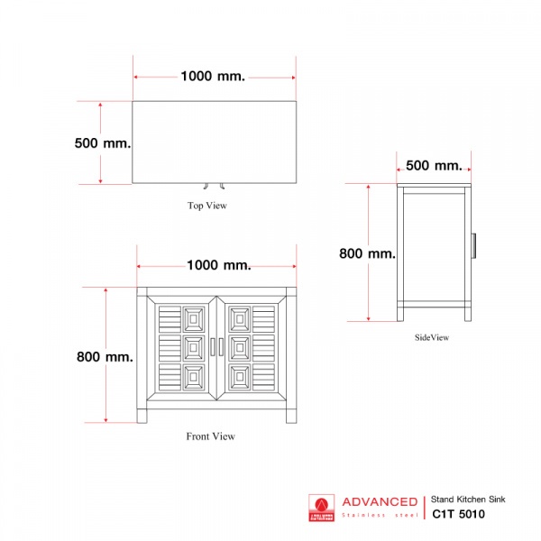 ตู้ซิงค์ขนาด (มม.) : 500x1000x800 (กว้างxยาวxสูง)