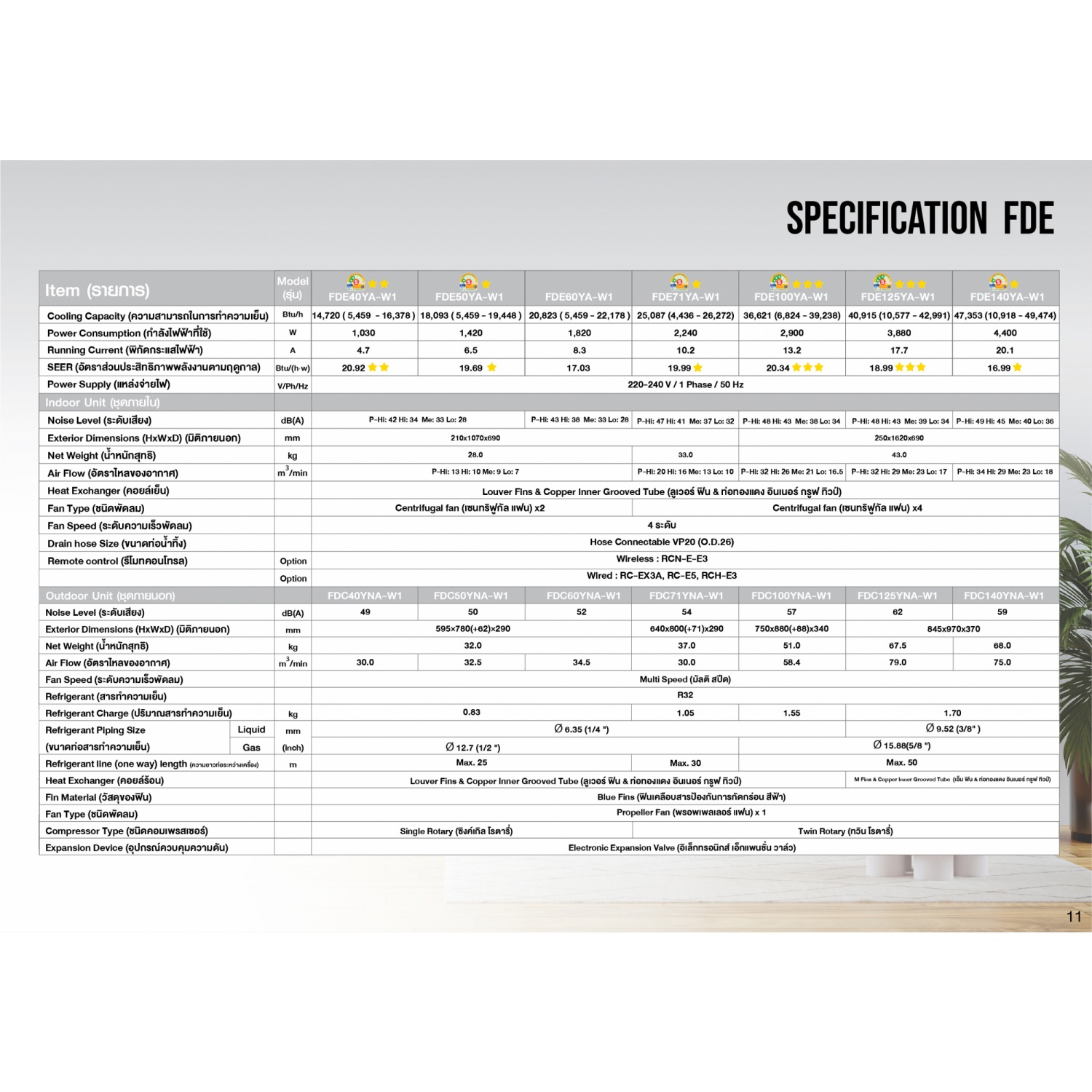 | รุ่น | FDE100YA-W1 White (Inverter) |